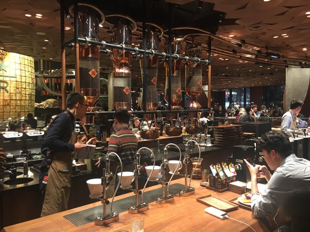 Tag 2 bringt einen Besuch im lokalen Starbucks Reserve Store. Von der Fläche doppelt so groß wie das erste „R“ in Seattle. Hier wird Kaffee zelebriert! Die Bohnen laufen durch „tubes“, vor Ort wird geröstet, viel Premium das die Chinesen zu schätzen wissen, sonst wäre die Schlange vor dem Eingang nicht oft so lang. Auch das Preisgefüge liegt hier bei über 40 % vom „average“ Starbucks um die Ecke. Wenn dann die komplette Kalkulation stimmt, welche im Bereich Kaffee schnell bei 1000% in der Deckung liegt, geht das Konzept bei entsprechenden Kundenvolumen voll auf. Die doppelte Verkaufsfläche wird unter anderem auch für eine komplette Tee-Sektion genutzt. Die Akuisition von „Princi“, einer italienischen Mehlspeisen Manufaktur mit Ihren Shops, ist eine perfekte Integration zum sonst so bieder daherkommenden Foodangebot, welches sehr oft komplett aus der Tiefkühltruhe und schon gebacken den Weg in die Auslage findet.