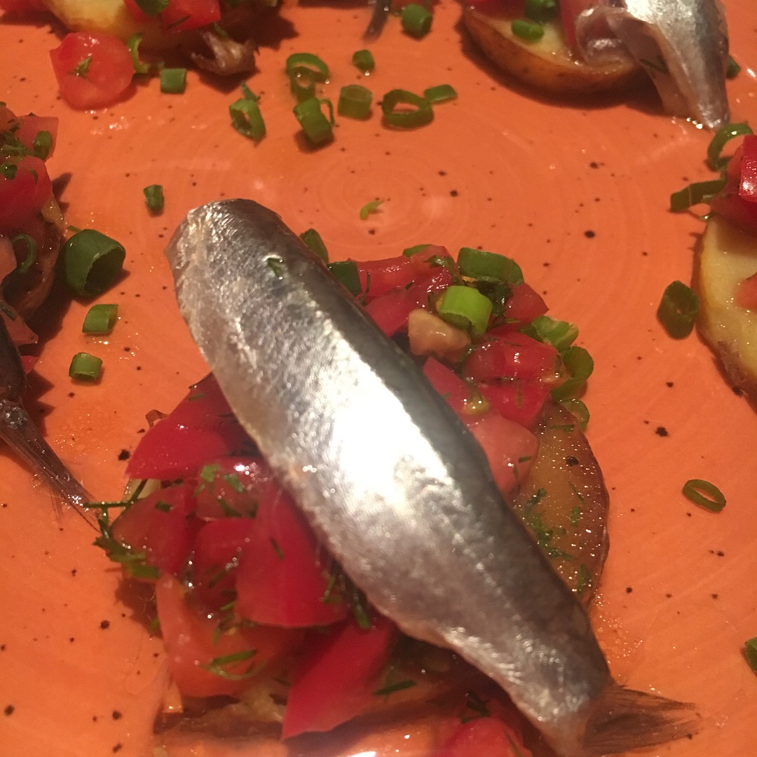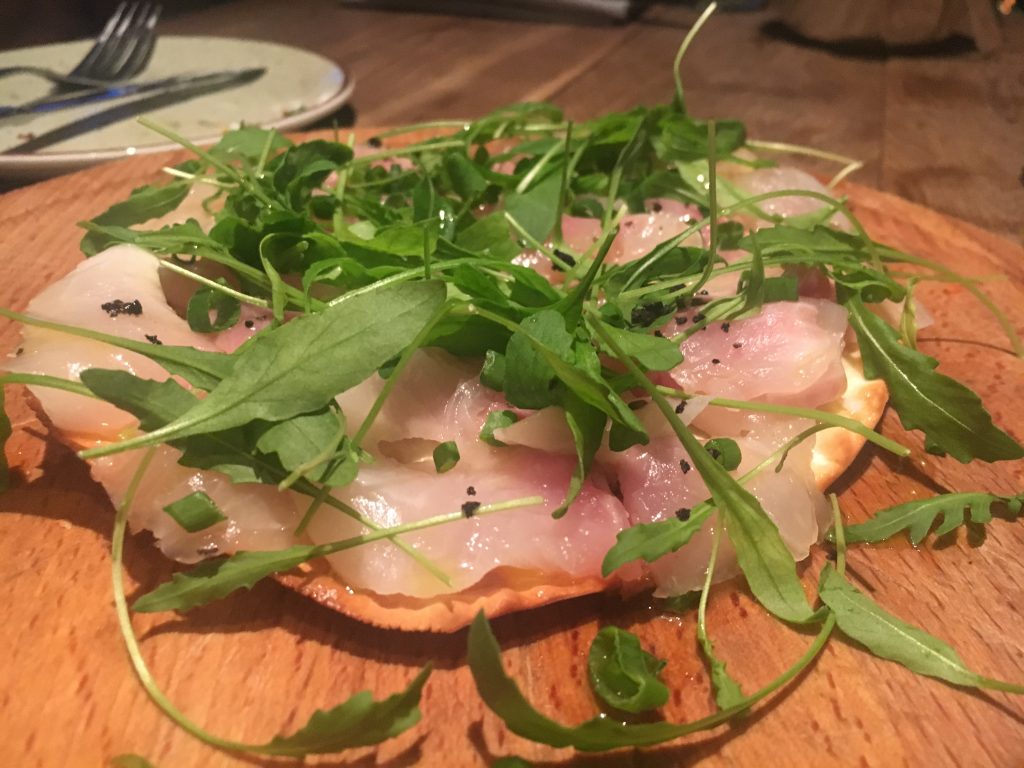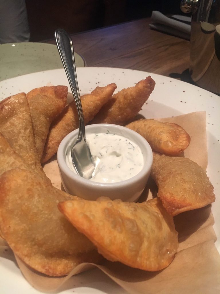 Die mit Lamm gefüllten Teigtaschen „Cheburek“ sind knusprig frittiert und werden mit einer Knoblauch-Joghurtsauce angeboten. Die kleinen „Kil´ka“ Fischfilets sind nichts anderes als Sardinen, die auf runden Kartoffelscheiben mit Tomaten mundgerecht und akkurat angerichtet worden sind. Auch das Sashimi von der Dorade mit knusprigen Fladenbrot ist ein purer Genuss-super leckere Küche in Moskau-vielen Dank!