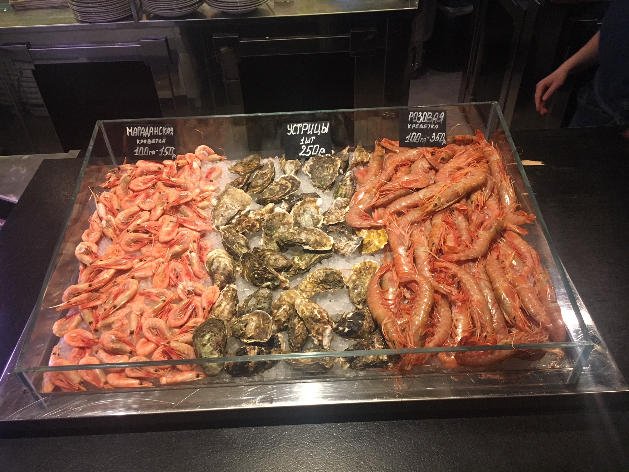Am Abend vorher besuchen wir das Valenok. Ein Restaurant im modernen chic, mit einer tollen Warenpräsentation direkt im Eingangsbereich, guter internationaler Weinkarte und zu meiner Überraschung, trotz Embargo, einem perfekt gegrillten zarten Ribeye Steak, welches medium und mit einem tollen Holzkohle- Geschmack den Weg an den Tisch findet. Die Rasse ist Black Angus aus der Voronezh Region, diese liegt ca.700 Kilometer südlich von Moskau. Hier hat man sich auf das Embargo von Lebensmitteln aus dem Westen in den letzten Jahren perfekt aufgestellt.