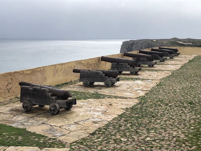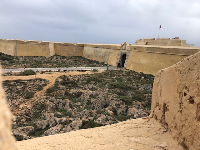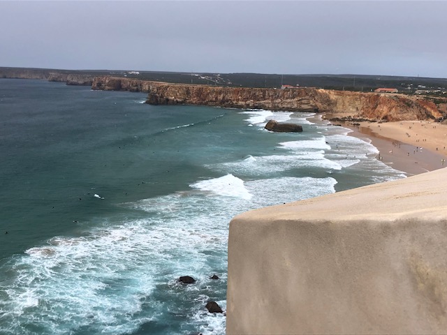 Und der erste Trip dieser Art geht diesmal zur „letzten Currywurst vor Amerika“, also zum westlichsten Zipfel des Kontinents. Der Food-Truck ist schon in der verdienten Winterpause, so hält eine Tüte Chips als Lückenfüller her, um dann auch gleich in der Kategorie des „Junk-Food´s“ zu bleiben. Die Klippen hier sind wirklich beeindruckend, von Muschelkalk geprägt, goldgelb in Licht der Sonne und bis zu 50 Meter hoch. Diese Höhe lässt Angler nicht abschrecken hier ihr (Fisch-) Glück zu finden. Auch ist die Region eine gute Surf-Ecke, bis zu 100 liegen im türkisfarbenen Atlantik und warten auf die perfekte Welle. Unmittelbar über ihnen thront die Festung Fortaleza de Sagres, eine Verteidigungsanlage aus dem 15. Jahrhundert. Aufgabe war natürlich die Verteidigung gegen Piraten und weniger der Lookout für die Wellenreiter. Für 3 Euro kann man die 1000m lange und 300m breite Landzunge mit ihrer Festung besuchen. Beide Ecken im äußersten Europa sind definitiv einen Abstecher wert und somit eine klare Empfehlung.