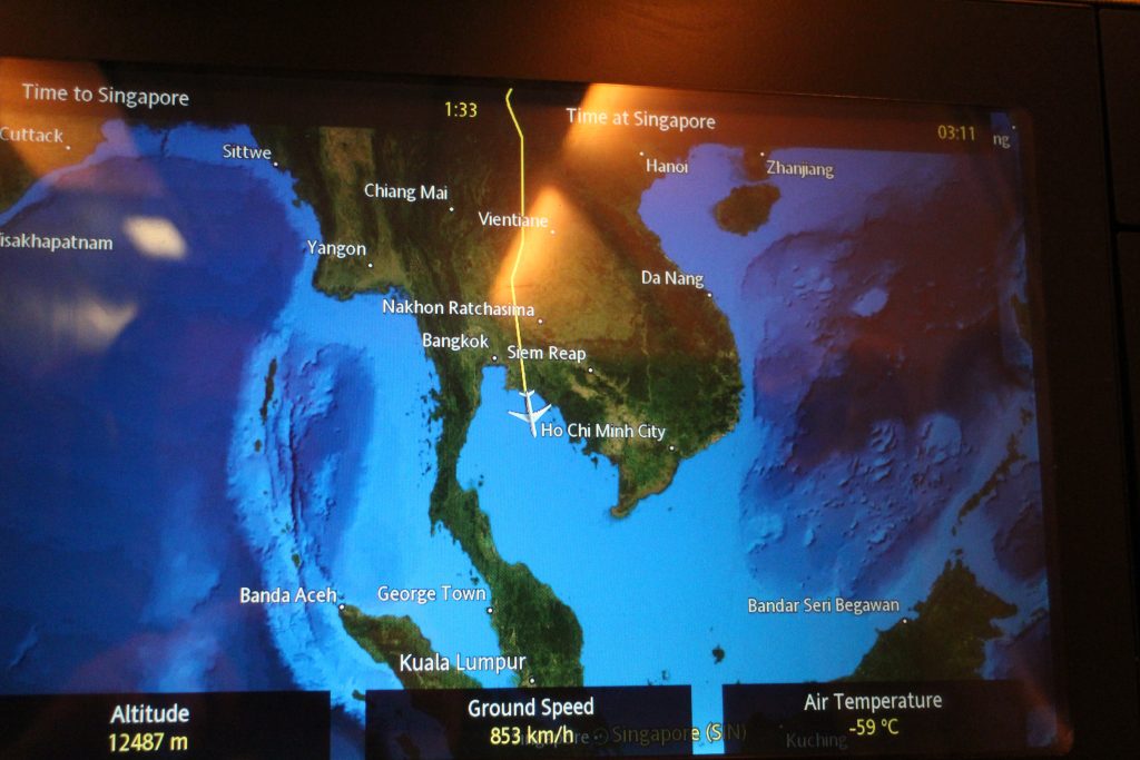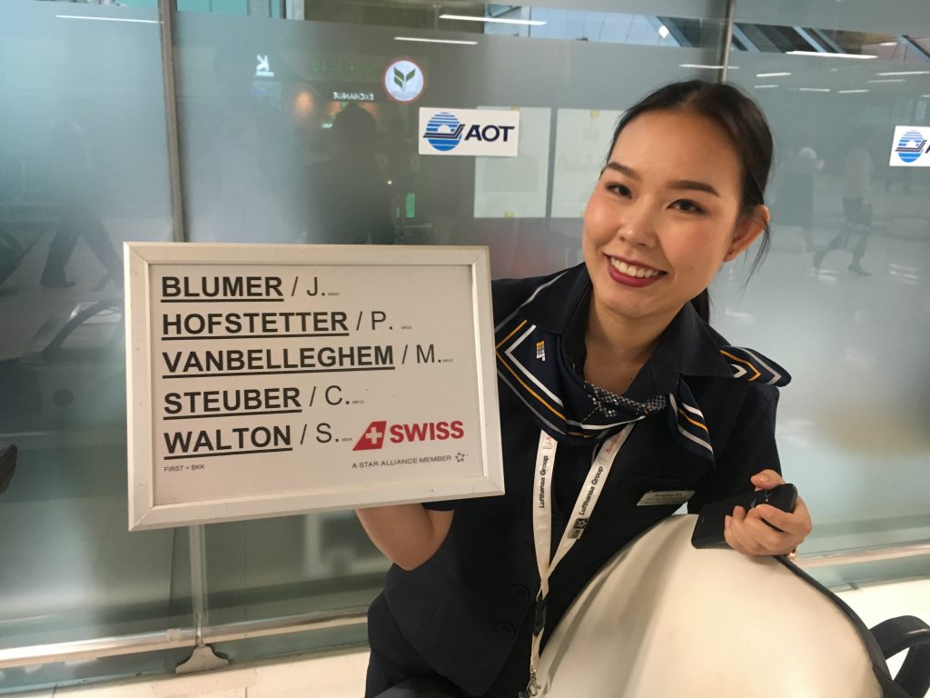 Mit LX 180 geht es knapp 10 Stunden nach Bangkok auf 1 G. Ja leider waren nur noch Mittelsitze frei, dann halt heute einmal kein Ausblick, was auch nicht wirklich so schwer ins Gewicht fällt da nach 3 Stunden schon die Dunkelheit eintritt. Der Sitz ist mit knapp 2.02 Metern und einer Trennwand zum Nachbarn sehr angenehm und die Zeit vergeht wortwörtlich wie im Flug. Apropos Sitznachbar! Mario, Belgier, lebend in Kamerun hat mit 80 Angestellten ein Business aufgebaut das sich um „hair extentions“ dreht. Er produziert diese in Asien und verkauft einen großen Teil davon in Afrika – die Warenflüsse sind mir nicht immer alle plausibel, aber so ganz neu auch wiederum nicht.