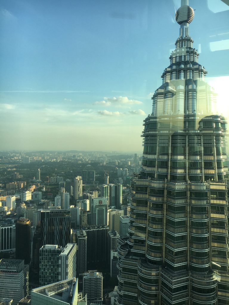 Meiner Meinung erkennt man eine gute Bar auch daran, ob man am nächsten Tag einen „hangover“ hat oder nicht. Sicherlich unter der Berücksichtigung der Quantität nicht das einzige Kriterium.  Weiterer Programm Punkt in dieser von Hügeln umgebenen Stadt sind die Petronas Towers. 1997 eröffnet, sind sie schon majestätisch in downtown integriert und bieten eine sehr gute Aussicht, wobei der höchste Punkt global gesehen schon längst wieder überholt ist, bei „nur“ 425 Metern.