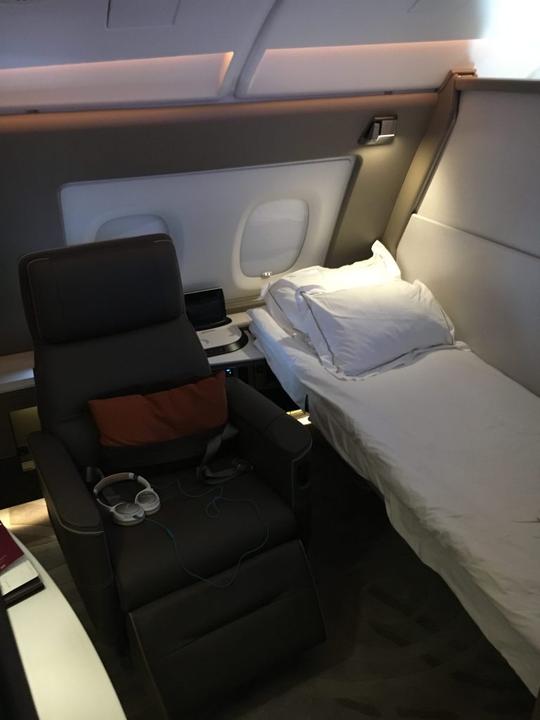 Zu dem neuen Produkt von Singapore Airlines, der Suites Class an Bord der brandneu ausgelieferten A 380 mit ihrem gut 4.5 qm großen Kabinenreich, ist wie folgt zusammenzufassen. Es besteht aus einem Ledersessel und einem weichen, flauschigen Bett, der 32 Zoll große Monitor lässt entspannt TV schauen, dass kulinarische onboard Produkt hat mit Emirates oder Ethiad eigentlich nur noch 2-3 Mitbewerber. Die 3:25 Stunden nach Hongkong sind entsprechend viel zu kurz, hier kann man sich gut vorstellen bis einschließlich Auckland oder Sydney weiterzufliegen. Als Getränk wird unter anderem ein 2004er Krug gereicht, der Hummer über die „Book the cook“ Option gebucht, mundet wie schon auf den Flügen im Mai ausgezeichnet. Die Bäder an Bord fallen ungewöhnlich groß aus, das kennt man selbst vom A 380 der Lufthansa. Sonst sind keine Parallelen festzustellen, schon gar nicht wenn es um die Freundlichkeit des fliegenden Personals geht. Mit 6 Kabinen, statt früher 12, ist es auch bei fast voller Auslastung sehr ruhig. Durch Zufall sind auch 2 bekannte deutsche Blogger auf SQ 856, was wiederrum für einen Austausch unter Aviation Nerds sorgt und einen intensiven Informationsaustausch mit sich bringt. Dominik und Stefan sind leidenschaftliche „globale Jungs“, die mal schnell für 2 Monate und mehr durch die Welt jetten und berichten. Aufwendig produzierte Videos, Berichte auf Instagram runden Ihre Leidenschaft ab. Schaut mal rein unter www.globaltraveler.tv