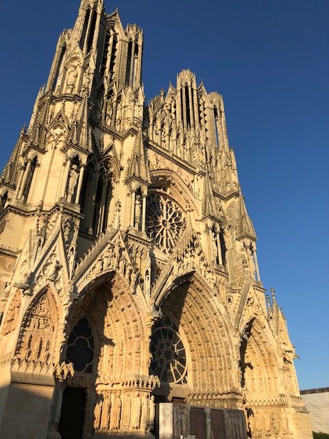 Es gibt Gegenden in die fährt man öfters im Leben. Neben Neuseeland, der Südsee oder Süd-Ostasien gehört auch die Champagne dazu, ich glaube zum siebten mal. Anlass sind ein paar Tage zwischen 2 Jobs, mit meinem 83 jährigen Vater, sich ein wenig frische Sommerluft um die Nase wehen zu lassen. Hierfür wird von Sixt ein Cabrio angemietet, sozusagen das Freiheitsgefühl inklusive, wenn es „oben ohne“ über die Landstraßen Frankreichs geht. Als ich meinen alten Herren in Koblenz einsammle, führt uns die Fahrt zuerst via Trier und Luxemburg, weiter auf der N 87 in Richtung Reims, wo definitiv der Champagner Keller von Pommery (erneut) auf der Besuchsliste steht. Herberge ist eine 2 Zimmerwohnung, unweit der Kathedrale. Zentral gelegen, sauber und mit naheliegender Parkmöglichkeit bietet es alles, was man für 2 Nächte braucht. Der hochwertige Parketboden, eine Rainforest Shower, die Küche welche wir nicht nutzen werden, alles ist stimmig, wie auf fewo-direkt angepriesen.
