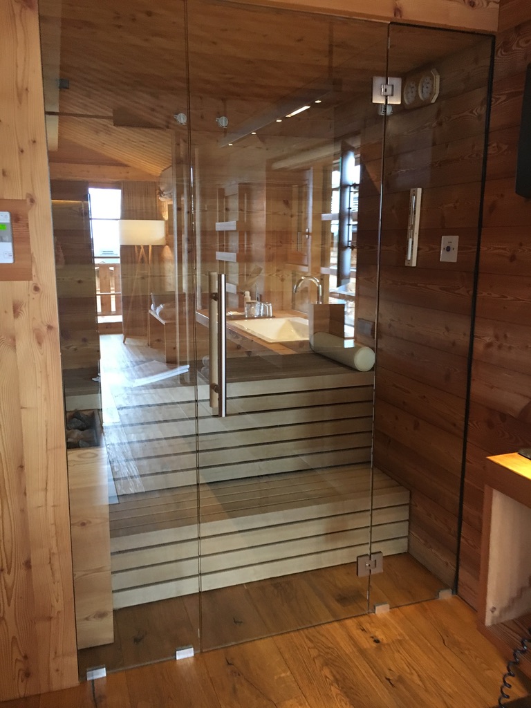 Das Chalet in welchem wir übernachten ist auf 2 Ebenen großzügig eingerichtet, 100% naturbelassenes Fichten- oder Lärchenholz verbreiten einen wohlwollenden Duft der Natur. Hinzu kommt eine kleine eigene Bio-Sauna, eine Regenwald Dusche und ein Kamin, der den Abend romantisch ausklingen lässt. In einem so empfindlichen Naturreservat wird auch entsprechend im Zimmer der Müll getrennt, auf Plastik im Getränkebereich komplett verzichtet.