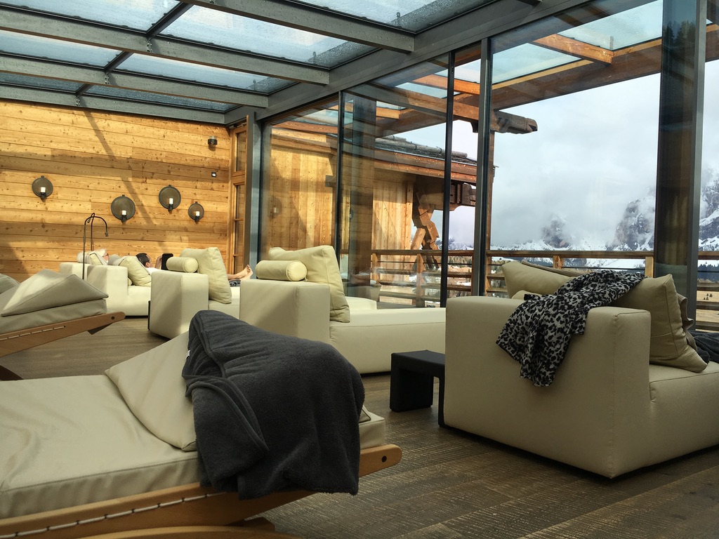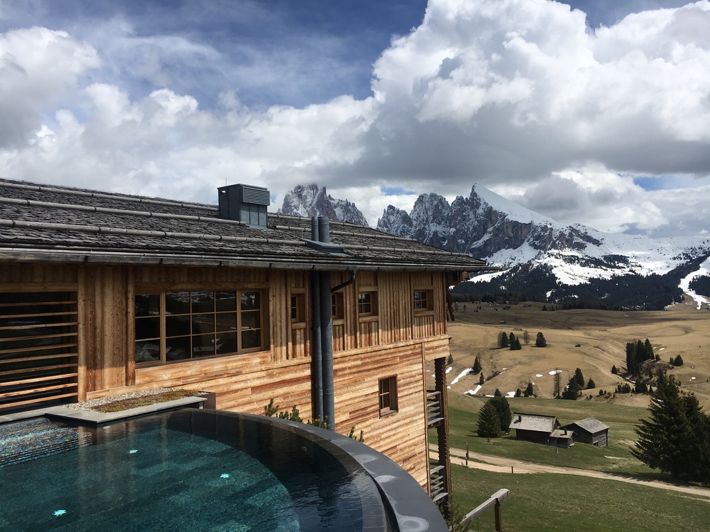 Nun zum eigentlichen Ziel, dem der Adler Mountain Lodge – es ist eine Herberge die wenige Wünsche offen lässt, in vielerlei Hinsicht. Auf die Seiser Alm kommt man mit dem eigenen Fahrzeug nur mit einer vorher organisierten Fahrerlaubnis, ansonsten kann es teuer werden im Naturschutzgebiet auf eigene Faust und ohne Ziel herumzufahren. Angekommen sind die Ausblicke grandios, die Kulinarik auf einem sehr ansprechenden Niveau und die Gastfreundschaft der Menschen vor Ort ein Paradebeispiel an Professionalität mit Herz. Man hat nie das Gefühl das ein Anflug von Stress oder Hektik die Erholung stören könnte da die maximal 60 Gäste, vielen von Ihnen verständlicher Weise Stammgäste, genießen ein Umfeld das uns an andere attraktive Ziele dieser Welt erinnert. Aktivitäten vor Ort sind E-biken oder unter der Alpensonne auf der Terrasse sitzend ein Glas Wein genießen und dabei auf den Schlern und die Langkofelgruppe schauen. Nach einer Wanderung lädt die Heusauna zum Besuch ein um die müden Muskeln bei angenehmen 65 Grad wieder Entspannung zukommen zu lassen. Der beheizte Außenpool, 35 Grad sind auch an kalten Tagen sehr willkommen, rundet das Erholungsprogramm im Anschluss ab. Im Wellnessbereich lassen sich diverse Anwendungen buchen, von Klangkörper- bis zur klassischen Massage oder einem speziellen Bergkräuterbad. Die hochwertige eigene Adler Kosmetik- und Beautyline rundet auch in diesem Bereich das Angebot konzeptionell ab.