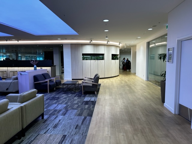 Neben der Air New Zealand Lounge gibt es im International Airport von Auckland auch noch weitere Lounges, so wie zum Beispiel die Strata Lounge. Diese liegt direkt hinter der Sicherheitskontrolle und zweigt wenige Meter nach dem Duty Free rechts ab. Wenn man die Rolltreppe hinauffährt fällt der Blick zuerst auf die Qantas International Lounge und genau hier, sozusagen im Rücken, ist der großzügige Eingangsbereich und Zugang der Strata, Priority Pass Lounge. Da der Abflug heute in Economy Class mit Qantas nach Sydney stattfindet, beinhaltet dies eigentlich keinen Zugang zu einer der Facilities. Mit dem besagten Priority Pass ist es dann doch möglich, da diese 1 von weltweit 1300 im Netzwerk ist. Was gleich auffällt, überall ist es recht hell und somit für Tageszeiten in denen Menschen eventuell auch es bevorzugen, etwas dunkler zu sitzen, fast unmöglich ist dies zu tun. Nach dem Empfang geht es direkt via Buffet zu einer der zahlreichen Sitzmöglichkeiten, welche in Form von Sesseln oder auch Arbeitsplätzen sich anbieten. Eine offene Küche verschafft den Eindruck das hier noch produziert wird, und nicht wie anderswo, alles in Beuteln aus einer Zentralproduktion auf die Teller kommt. Die Getränkeauswahl ist gewohnt großzügig und von hoher Qualität. Neuseeländische Gewächse wie ein buttriger Chardonnay mit einer leichten Holz-Note, von dem renommierten Hawkes Bay Weingut „Church Road“, als auch die Rebe Sauvignon Blanc oder Pinot Gris finden sich gut gekühlt im Weißwein-Kühlschrank. Neben einem asiatischen Geflügel-Curry werden auch Gnocchis in Blue-Cheese Soße angeboten, sehr gut und würzig abgeschmeckt, somit eine solide Auswahl vor einem vielleicht längeren Flug, auf dem durchaus auch mal kein „Hotmeal“ angeboten wird.