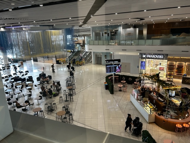 Neben der Air New Zealand Lounge gibt es im International Airport von Auckland auch noch weitere Lounges, so wie zum Beispiel die Strata Lounge. Diese liegt direkt hinter der Sicherheitskontrolle und zweigt wenige Meter nach dem Duty Free rechts ab. Wenn man die Rolltreppe hinauffährt fällt der Blick zuerst auf die Qantas International Lounge und genau hier, sozusagen im Rücken, ist der großzügige Eingangsbereich und Zugang der Strata, Priority Pass Lounge. Da der Abflug heute in Economy Class mit Qantas nach Sydney stattfindet, beinhaltet dies eigentlich keinen Zugang zu einer der Facilities. Mit dem besagten Priority Pass ist es dann doch möglich, da diese 1 von weltweit 1300 im Netzwerk ist. Was gleich auffällt, überall ist es recht hell und somit für Tageszeiten in denen Menschen eventuell auch es bevorzugen, etwas dunkler zu sitzen, fast unmöglich ist dies zu tun. Nach dem Empfang geht es direkt via Buffet zu einer der zahlreichen Sitzmöglichkeiten, welche in Form von Sesseln oder auch Arbeitsplätzen sich anbieten. Eine offene Küche verschafft den Eindruck das hier noch produziert wird, und nicht wie anderswo, alles in Beuteln aus einer Zentralproduktion auf die Teller kommt. Die Getränkeauswahl ist gewohnt großzügig und von hoher Qualität. Neuseeländische Gewächse wie ein buttriger Chardonnay mit einer leichten Holz-Note, von dem renommierten Hawkes Bay Weingut „Church Road“, als auch die Rebe Sauvignon Blanc oder Pinot Gris finden sich gut gekühlt im Weißwein-Kühlschrank. Neben einem asiatischen Geflügel-Curry werden auch Gnocchis in Blue-Cheese Soße angeboten, sehr gut und würzig abgeschmeckt, somit eine solide Auswahl vor einem vielleicht längeren Flug, auf dem durchaus auch mal kein „Hotmeal“ angeboten wird.