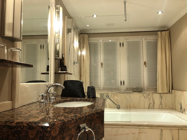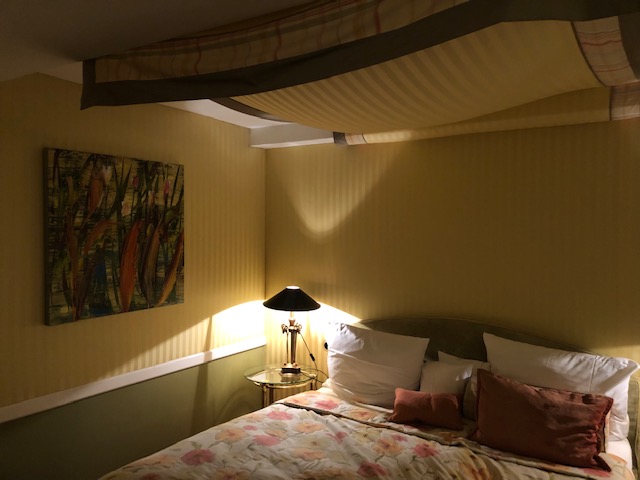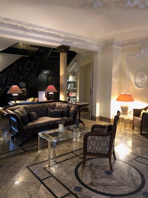 Das Kronenschlösschen ist eine Institution im Rheingau, angefangen vom Gourmet Restaurant bis zu den antiken Zimmern, einfach eine Reise wert. Meine wirklich erste Begegnung mit diesem Haus war auf einem Flug der Lufthansa nach Washington im Jahre 2007. In der First Class, im Upper-Deck der 747-400, in der alten 2-2 Bestuhlung. Wie jetzt, wird sich der allgemeine Leser fragen? Ja richtig, auf dem Weg über den Atlantik in 10.000 Metern Höhe, damals war Patrik Kimpel Küchenchef im Rheingau und kreierte die Speisekarte für Lufthansa im damaligen Star Chef Programm. Ich erinnere mich noch gut an den Steinbutt, natürlich in einer fein säuerlich und gut abgestimmten Riesling-Soße.  Zurück zum Schloss! Das wurde 1894 von einem Frankfurter Galeristen als Wohn- und Ausstellungshaus gebaut, 1990 aber erst so richtig wieder ins Leben zurück geholt, als es doch sehr baufällig und heruntergekommen war. Heute steht dort, gute 128 Jahre später, eine traumhafte Immobilie die die guten alten Zeiten mit modernen Komfort vereint. Die Zimmer sind großzügig mit Badewanne eingerichtet, hier und da muss man mal den Kopf einziehen, weil die Architektur es nicht anders zulässt. Die Treppen welche mit Teppich ausgelegt sind,  knirschen unter dem Druck des „Aufstiegs“ und überall herrscht eine gemütliche Atmosphäre durch das indirekte Licht. Die Zimmer mit gegenüberliegenden Neubau sind bei weitem moderner eingerichtet, lassen aber einen gewissen historischen Landhotel Stil vermissen. Wer das favorisiert ist hier sicherlich auch sehr gut aufgehoben, im Kronenschlösschen findet halt jede Generation etwas für den persönlichen Geschmack.
