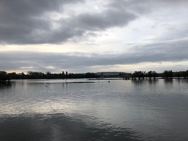 Zum Abendessen geht es aber in die Rhein-Schänke, keine 400 Meter vom Hotel entfernt. Das Lokal, besser die Surfer-Bude von nebenan ist eher informell, Burger und Spundekäs, dazu ein Glas Riesling versteht sich. Im Sommer sitzt man hier extrem entspannt und direkt am Rhein. Dabei genießt man die vorbeifahrenden Schiffe und lässt den lieben Gott einen guten Mann sein. Es ist eine Art Bootshaus, so würde ich das Feeling exakt beschreiben. Unweit ist der Weinprobierstand, wo sich die regionalen Winzer abwechseln und ihre Tropfen offerieren. Wenn das nicht mal eine gelungene Lebenskultur ist, ja ein Dreieck des Genusses, „what more can you ask for?“