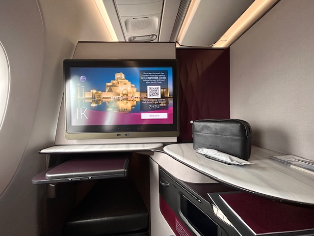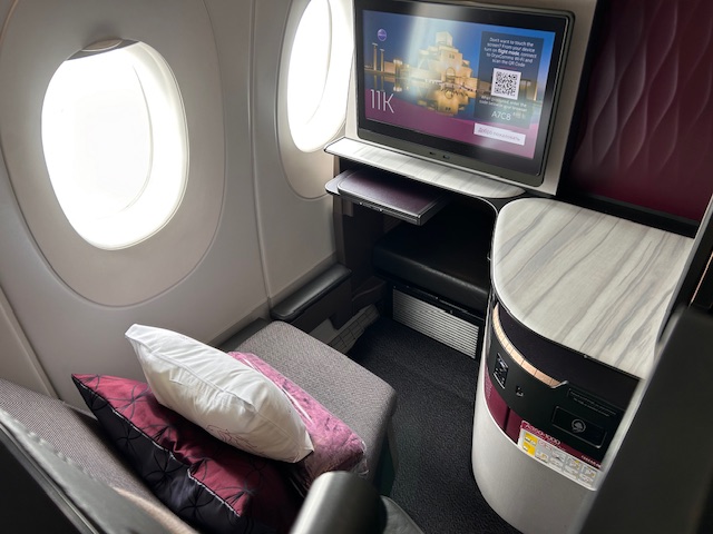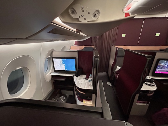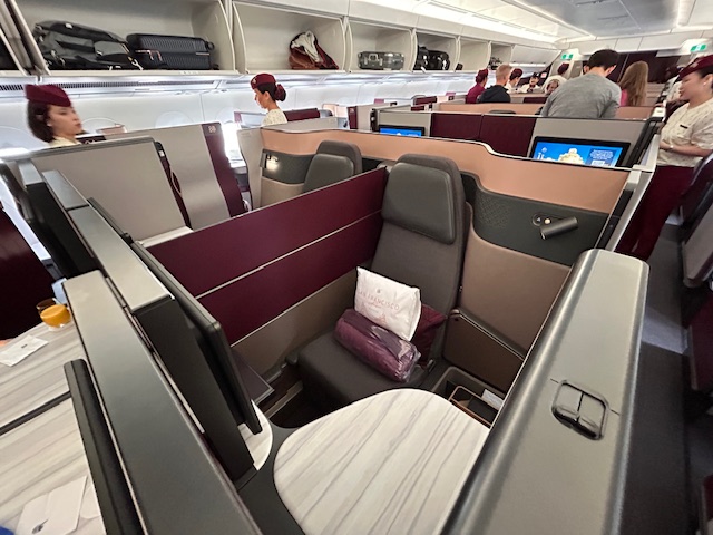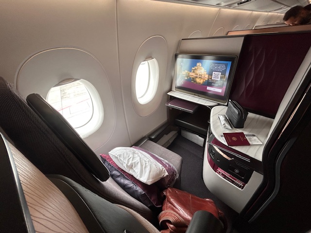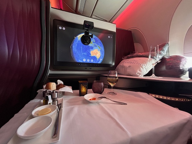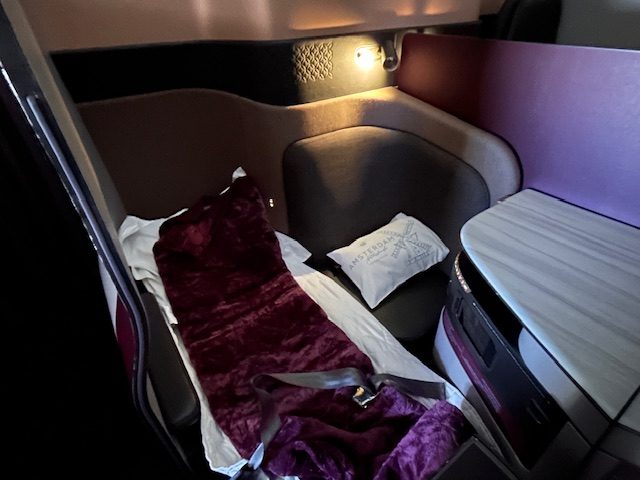 Die Auswahl fiel somit auf eine der besten Airlines überhaupt, Qatar Airways. Das Produkt genießt einen herausragend guten Ruf, was auch auf meiner Reise bestätigt wird?Die QSuite wurde immer mit dem Ziel designed maximale privacy zu garantieren und deshalb lässt sie sich mit einer Tür schließen. Die Anordnung ist für einige Menschen allerdings gewöhnungsbedürftig, da die Hälfte der Sitze gegen die Flugrichtung ausgerichtet ist. Dies trifft auch auf die getroffene Auswahl zu, 1 K. Die Business Class ist auf dem 17 Stunden Flug nur zu 50% belegt, dies ermöglicht auch einen Sitz und ein Bett einzurichten, quasi eine Doppelbelegung, was zusätzliche Freiheit und Platz bietet. Mit 17 Stunden ist es übrigens auch der 3. längste Flug der Welt und wird nur noch von Singapore Airlines getoppt, die von ihrer Heimatbase nach New York fliegen. 2013 hatte ich das Vergnügen in einer A 340-500 mit nur 100 Sitzen dabei zu sein, bevor diese Verbindung eingestellt und vor ein paar Jahren mit einem nagelneuen A 350-900 wieder aufgenommen wurde. Needless so say, es ist vermutlich ein Ziel für jeden Aviation Fan, einmal Platz zu nehmen auf dieser Ultra-Langstrecke 🙂 18 Stunden mit SQ #2013