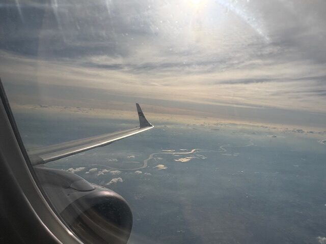 Super pünktlich geht der nicht mal volle Flieger über den Rhein hinweg Richtung Norden. Mit 2:20 Stunden ist der Flug in die finnische Hauptstadt kurzweilig. Die Sitze sind schon etwas über 15 Jahre alt und wie bei der guten alten Hanse durchgesessen.