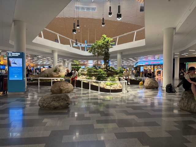 In Helsinki erwartet den Passagier ein aufgeräumtes leicht provinzelles, aber auch entspanntes Design-Flughafen-Terminal. Der Weg hinaus ist durch ein architektonisch attraktives Gebäude ist kurz. Mit einem Uber ist man innerhalb von 25 Minuten in der Innenstadt und genießt die kurzen und hellen Nächte. Alternativ ist es eine Stunde mit den öffentlichen Verkehrsmitteln.