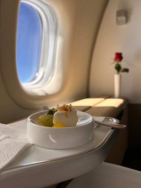 Das LH Produkt spiegelt im internationalen Vergleich leider hier und da kein First Class Niveau wieder. Der Sitz naja, der Champagner und Kaviar Service (Qatar bietet letzteres in der QSuite/BC auf selektiven Strecken an) hüpft nochmal auf das „Benchmark First Class“, vieles ist auf Business-, ja fast schon Economy Class Niveau angekommen (z.B. der Gin Bombay Sapphire oder Weissweine auf 10 Euro net Level).
