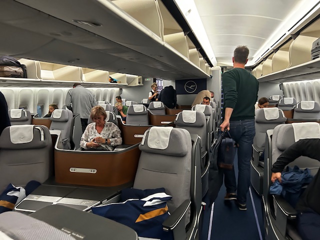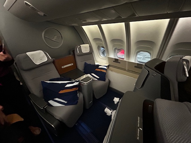 Es geht mit der Lufthansa nach Singapore. Das Business Class Produkt in der Sitzordnung 2-2 (upper deck) bzw. 2-2-2 (main-deck)  ist etwas out-dated, es besteht kein freier Zugang zum Gang von den Fensterplätzen aus, somit ist die gute alte Kletterstube angesagt, wenn der Gast „raus“ will. Bei einer Reise zu zweit ist es auch in Sinne der Privatsphäre noch ok, für Alleinreisende ist es eher unangenehm. Traurig genug das dies noch die nächsten Jahre in vielen Flugzeugen der Kernmarke so bleiben wird! Aber es gibt Hoffnung da der neue Sitz, welcher seit 2017 alljährlich vorgestellt und durch die Medien geprügelt wird, dann doch im Sommer 2024 final zum Erstflug abheben soll.