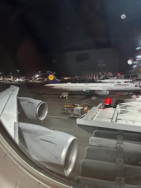 Ein Zubringer aus Düsseldorf nach Frankfurt ist der gewohnte Standard Economy Seat, welcher als Business Produkt verkauft wird. In Frankfurt angekommen geht es weiter zu den Abfluggates Z, vorher sitzt man noch bei einem Gintonic in der Lounge um die Zeit zu überbrücken, dann geht es tatsächlich schon los Richtung Singapore. Das Priority Boarding klappt in Summe sehr gut, im Flieger angekommen geht es in das Upper Deck. Ich persönlich liebe das Obergeschoss der 747. Die Maschine ist 11 Jahre alt und noch mit der alten Lackierung unterwegs, man wird herzlich begrüßt. Schon jetzt macht es Hoffnung das eine gute Crew die Missstände und Versäumnisse der Konzernleitung ansatzweise retten kann.