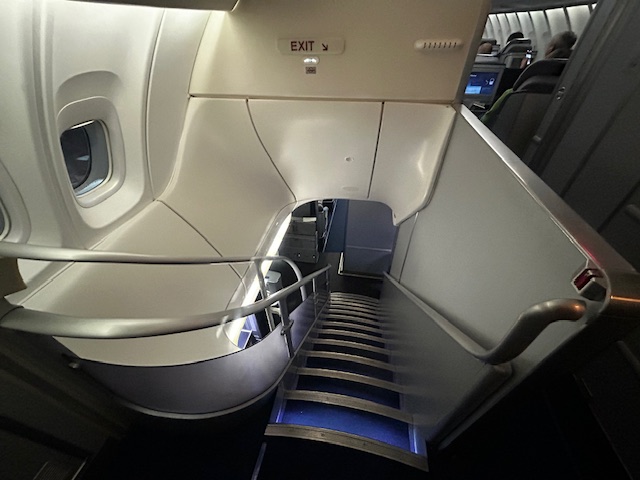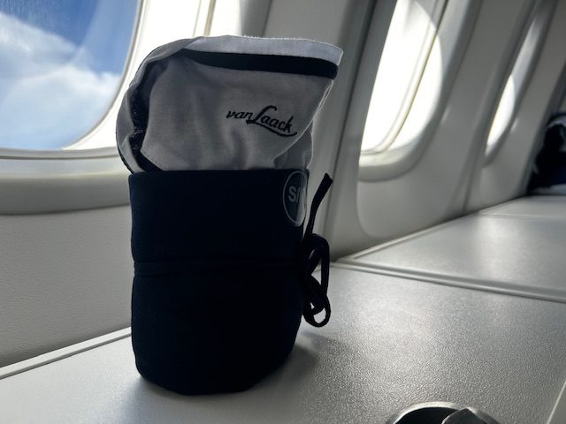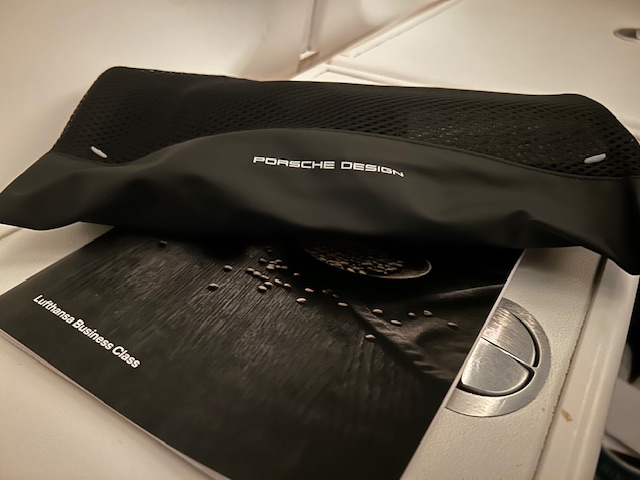 Über diesen Sitz ist eigentlich schon alles gesagt. Das er sich zu einer komplett flachen Liegefläche ausfahren lässt ist vielleicht noch die positivste Eigenschaft. Geringe Staufläche, wenig bis keine Privatspähre und ein relativ kleiner Bildschirm mit einer mittelmässigen Filmauswahl, sind keine Attribute die in der Liga „Premium“ auffindbar sind. Zugegeben ist die Matrazenauflage, die qualitativ gute Decke und das Van Laack Schlafanzug-Oberteil noch eine gutes add-on! Der Kulturbeutel ist stylisch und mit einem Porsche-Design Emblem versehen. Er beinhaltet neben den Socken, der Zahnbürste auch noch Pflegeprodukte von de loccitane.