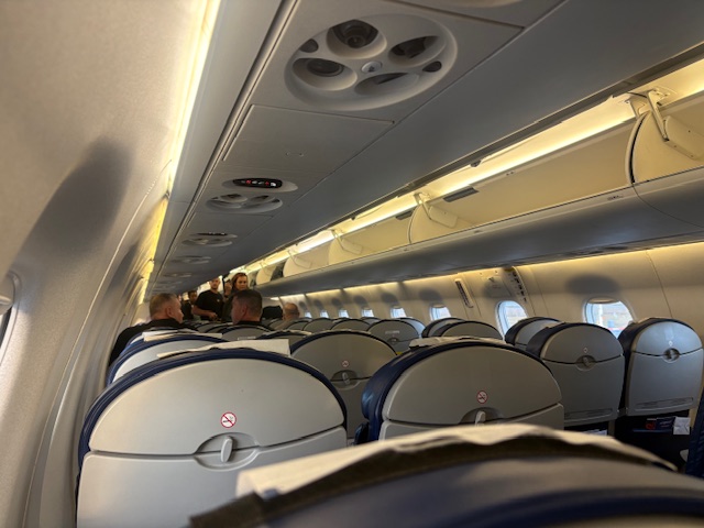 Am Checkin gab es noch ein wenig Verwirrung da unter anderem ein Flugzeug Wechsel stattfand, aus Reihe 4 wurde 16 – Autsch ????