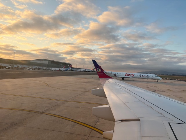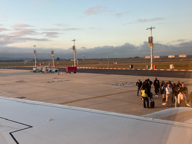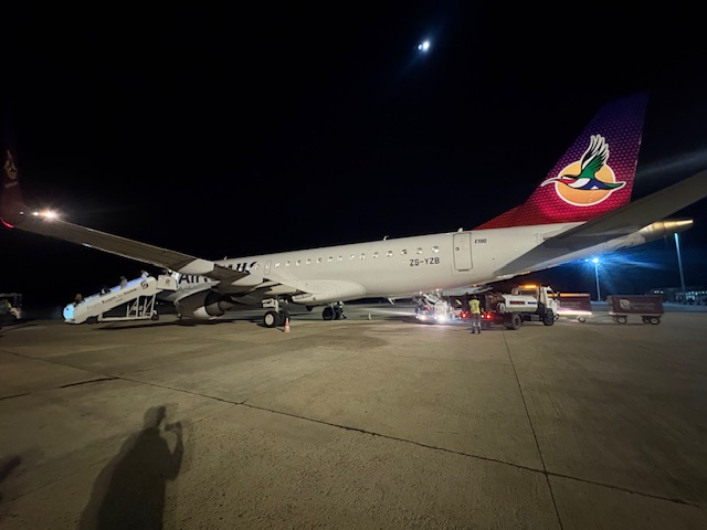 …ist Kapstadt. Nach dem angenehmen Aufenthalt in der Bidvest Lounge, geht es per Busgate an den Flieger. Eine Embraer 190 mit Sitzplätzen bis zu 100 Personen ist der eingesetzte Jet nach Windhoek.