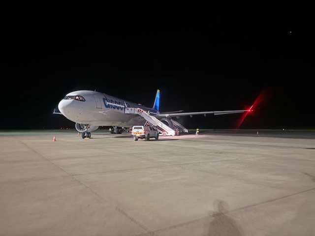 ……unterhält während der Hochsaison von Frankfurt also auch von München mehrmals wöchentlich eine Direktverbindung. Das Fluggerät ist eine 21 Jahre alte Airbus Maschine vom Typ A 330-300. Die Bestuhlung ist das alte/aktuelle Lufthansa Business Class Produkt, wie auf dem Hinflug. Eigentlich ist es ein Trauerspiel das die neu aufgestellte Condor mittlerweile mit ihren Jets das Hardware-Produkt der Discover um Längen abgehängt hat. Die Sitze sind in einer 2-2-2 Anordnung gerade auf Nachtflügen suboptimal und zu wann eine Besserung eintrifft kann nicht abgesehen werden.