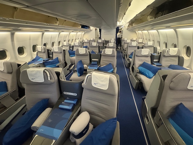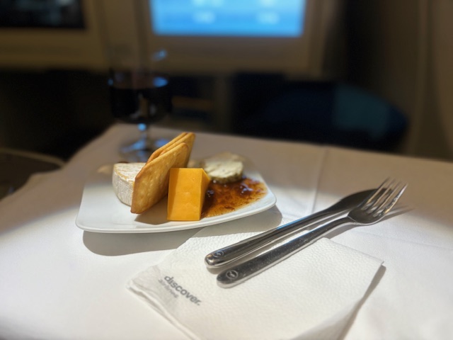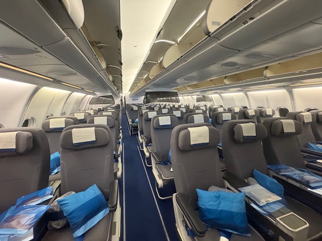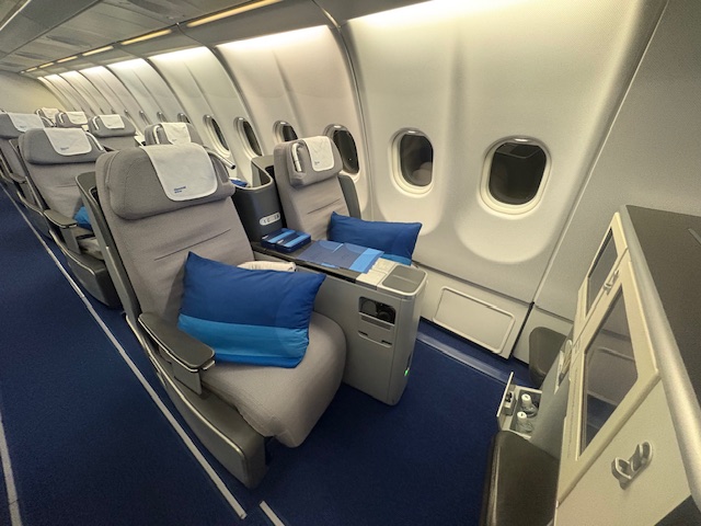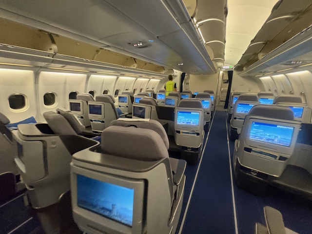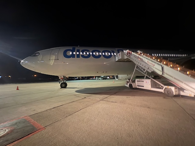 ……unterhält während der Hochsaison von Frankfurt also auch von München mehrmals wöchentlich eine Direktverbindung. Das Fluggerät ist eine 21 Jahre alte Airbus Maschine vom Typ A 330-300. Die Bestuhlung ist das alte/aktuelle Lufthansa Business Class Produkt, wie auf dem Hinflug. Eigentlich ist es ein Trauerspiel das die neu aufgestellte Condor mittlerweile mit ihren Jets das Hardware-Produkt der Discover um Längen abgehängt hat. Die Sitze sind in einer 2-2-2 Anordnung gerade auf Nachtflügen suboptimal und zu wann eine Besserung eintrifft kann nicht abgesehen werden.