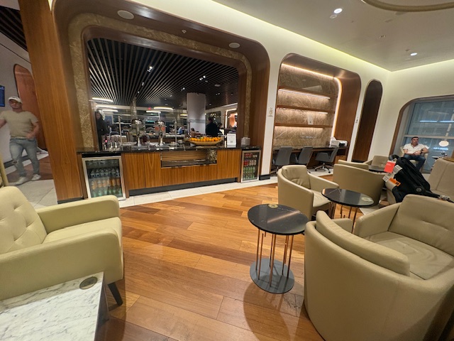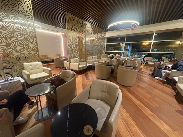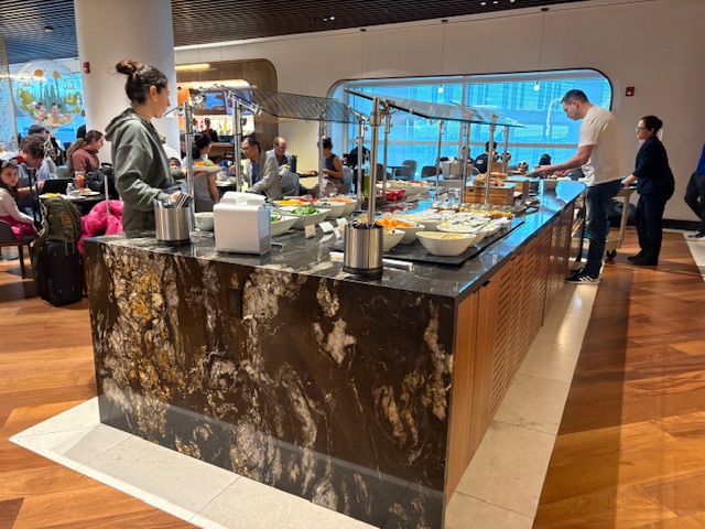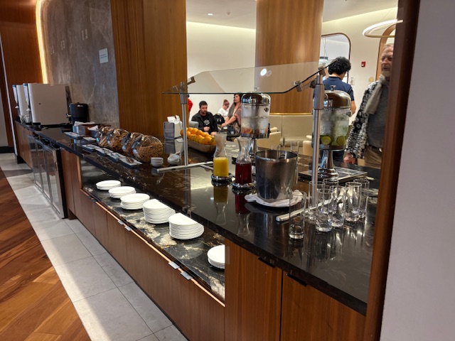 Nach der Sicherheitskontrolle steht der Lounge Besuch an. In Miami wird dieser von einem Partner angeboten, in dem Fall von Turkish Airlines und Latam. Sie ist täglich von 5:00 Uhr bis 22:00 Uhr geöffnet, bietet neben dem F&B Angebot auch die Option zu Duschen oder für Geschäftsreisende die Meeting Räume. Allerdings ist diese im Abschnitt D gelegen und ist auch die einzige Star Alliance Lounge für den gesamten Verbund. Obwohl Priorty Pass Inhaber vom Prinzip her auch Zugang haben, ist diese immer sehr gut besucht, so dass schlussendlich die Zugangsberechtigung für Passinhaber entfällt. Es können schlussendlich nur Business- & First Class Passagiere eintreten die über ein Ticket am gleichen Tag verfügen.
