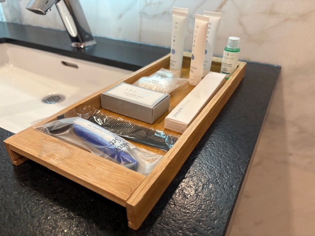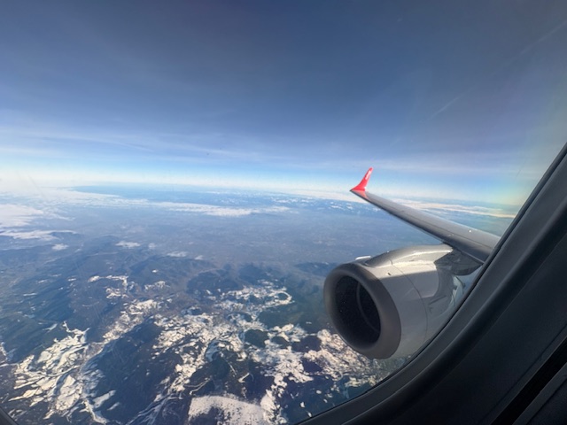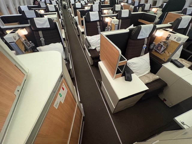 Der Sitz ist was er ist um das mal vorweg zu schicken. Er ist in Nuancen besser als die aktuelle Lufthansa Business Class. Was beiden Sitzen fehlt ist eine gewisse Privatsphäre, auch bei Nachtflügen eine weiche Unterlage, um nicht gleich von einer Matratze zu sprechen. Im Schulterbereich fehlt ihm eine gewisse Breite, der bei uns vorgefundene breitere Fußbereich (bulkhead) ist allerdings ein Vorteil, auch wenn er nicht an anderen Sitzen vorzufinden ist. Der Amenity Kit, also der Kulturbeutel, hat alles was es braucht, von der Zahnbürste über Socken oder eine Augenklappe. Er kommt in einer stylischen Metallbox von Victorinox und wird second-hand im Internet für um die 20 Euro versteigert. Die Ankunft ist dann trotz verspäteten Abflugs einigermaßen pünktlich so das sich der Anschlussflug nach Düsseldorf inklusive der anstehende Passkontrolle und Terminalwechsels ohne Stress erledigen lässt.