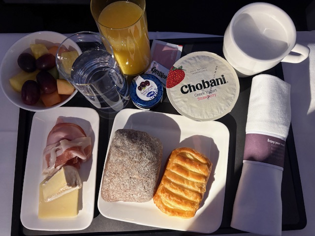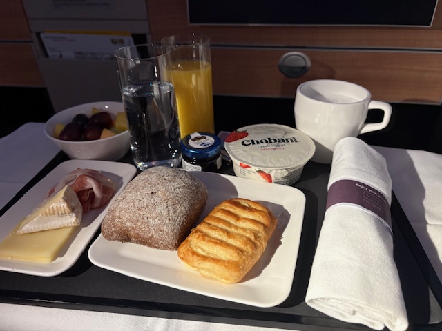 Der 2.Service oder auch das Frühstück ist klassisch „continental“ plus eine Eierspeise. Schon bevor die Nacht gestartet ist kann man auswählen ob man dafür überhaupt geweckt werden möchte oder die getroffene vorab Wahl aufgetischt wird.
