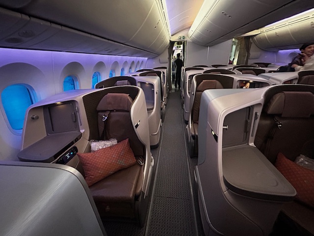 Auf 12k geht es mit direkten Zutritt zum Gang nach Bali, Denpasar. Der Sitz ist für eine regionale Business Class herausragend gut. Turkish fliegt ihn auf der Langstrecke, von den europäischen Airlines ganz zu schweigen, hier findet man zu 99% nur Economy Sitze bei denen der Mittelplatz frei bleibt. Er lässt sich auch in eine komplett flache Liegefläche herunterfahren, der eigene Entertainment Bildschirm kommt mit einer hohen Auflösung daher, der Blick aus dem Fenster, welche dimmbar sind, ist immer noch die schönste Option. Als Wein wird unter anderem ein herausragender Sauvignon Blanc aus Neuseeland, vom Weingut https://craggyrange.com/ angeboten, der durch eine angenehme Frucht, etwas Holz, eine feine Säure und der typischen Exotik besticht. Der Champagner aus dem Hause Piper Heidsieck ist eine Sonderauflage „Essentiel“, er hat eine 5G Dosage auf 1 Liter und kommt somit an den Level eines Extra Brut. Im Hauptgang fällt die Wahl mit dem Programm Book the Cook, auf ultra zarte Lammracks, der Rücken ist sogar rosa gebraten, was noch viel mehr beeindruckt. Warum? Hier sind alle Mahlzeiten vorgekocht, werden durch das Bordpersonal nur noch erhitzt, dabei kann viel schiefgehen, hier stimmt heute wirklich alles.
