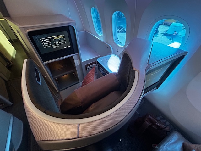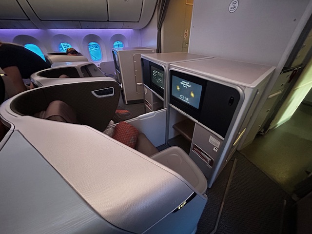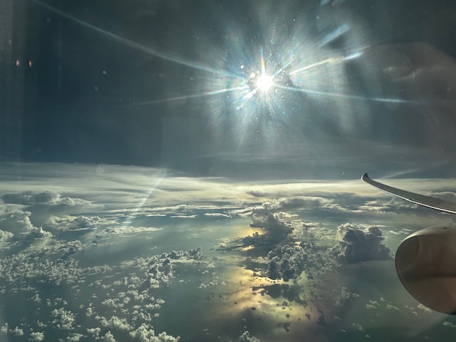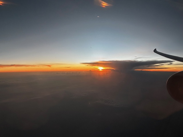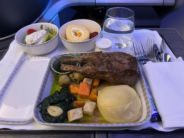 Auf 12k geht es mit direkten Zutritt zum Gang nach Bali, Denpasar. Der Sitz ist für eine regionale Business Class herausragend gut. Turkish fliegt ihn auf der Langstrecke, von den europäischen Airlines ganz zu schweigen, hier findet man zu 99% nur Economy Sitze bei denen der Mittelplatz frei bleibt. Er lässt sich auch in eine komplett flache Liegefläche herunterfahren, der eigene Entertainment Bildschirm kommt mit einer hohen Auflösung daher, der Blick aus dem Fenster, welche dimmbar sind, ist immer noch die schönste Option. Als Wein wird unter anderem ein herausragender Sauvignon Blanc aus Neuseeland, vom Weingut https://craggyrange.com/ angeboten, der durch eine angenehme Frucht, etwas Holz, eine feine Säure und der typischen Exotik besticht. Der Champagner aus dem Hause Piper Heidsieck ist eine Sonderauflage „Essentiel“, er hat eine 5G Dosage auf 1 Liter und kommt somit an den Level eines Extra Brut. Im Hauptgang fällt die Wahl mit dem Programm Book the Cook, auf ultra zarte Lammracks, der Rücken ist sogar rosa gebraten, was noch viel mehr beeindruckt. Warum? Hier sind alle Mahlzeiten vorgekocht, werden durch das Bordpersonal nur noch erhitzt, dabei kann viel schiefgehen, hier stimmt heute wirklich alles.