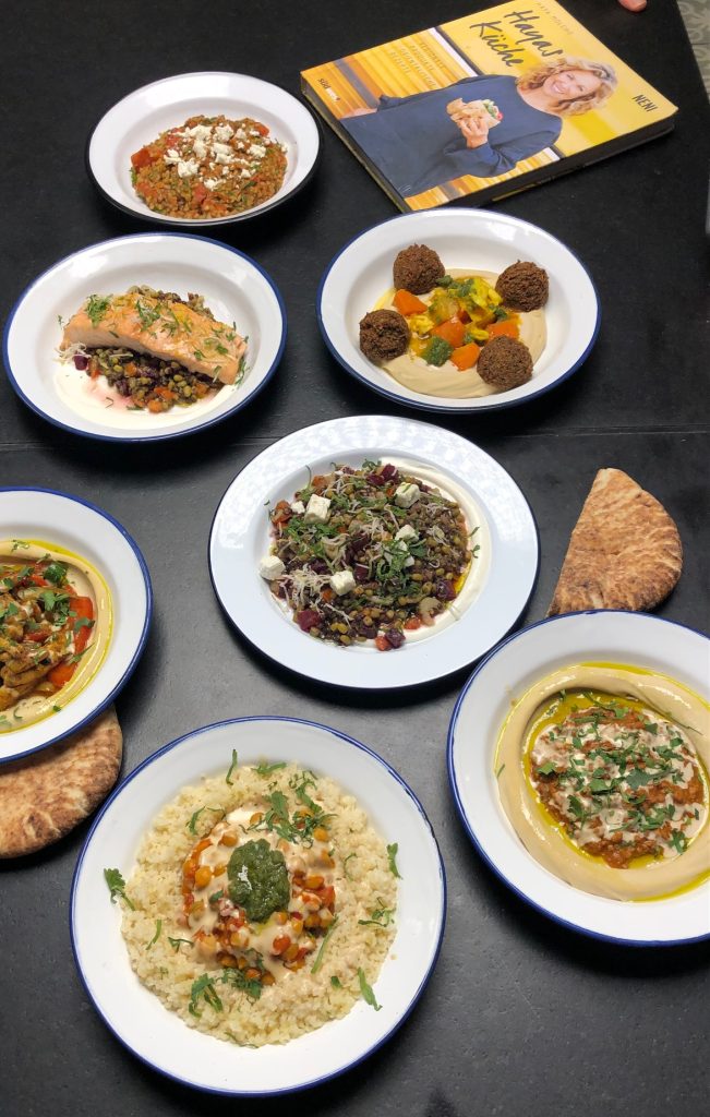 Wien, again könnte fast die Überschrift heißen, diesmal ist es eine berufliche Stippvisite bei der Starköchin. Haya hat israelische Wurzeln, kocht entsprechend orientalisch, betreibt nicht nur ein Restaurant, sondern einige, konkret 12 Stück. Alle unter dem Namen „Neni“, von Kopenhagen bis Mallorca,  in Wien gibt es schon zwei davon, wobei das dritte diesen Mai folgen wird, direkt am Wiener Tel Aviv Beach! Der liegt am Donaukanal und ich bin gespannt wie improvisiert oder ausgereift das Konzept an den Start gehen wird. Improvisiert deshalb, weil in Ihrem ersten Neni am Naschmarkt, alles noch ein wenig „anfänglich“ daherkommt, was nicht im Ansatz als Kritik gemeint ist, sondern Ausdruck eines gewissen Charmes und super in den Naschmarkt auch passt! Insgesamt gehört Ihr mein voller Respekt, eine mehr als beachtliche bis dato Lebensleistung, denn neben dem Job als Restaurantbetreiberin gehören auch zahlreiche TV Auftritte, zuletzt im Format von Tim Mälzer, „Kitchen Impossible“. Neben 6 vorzüglichen Gerichten, welche wir verkosten und zur Produktentwicklungs-Range gehören, wurde vorher die Commercial Seite abgeklopft, bei allem Glamour gehört final ja auch dazu, einen gesunden Gross-Profit zu erwirtschaften. Sodexo, die Belegschaft wird definitiv Spaß mit den Inhalten haben, etwas für das Image, ja die Kulinarik tun können. Weil im Vorfeld auch immer Vertragsverhandlungen dazugehören ist das nicht immer ein Selbstläufer, bei reduzierten und angepassten Budgets, während dieser fundamentalen Krise.