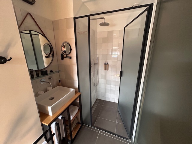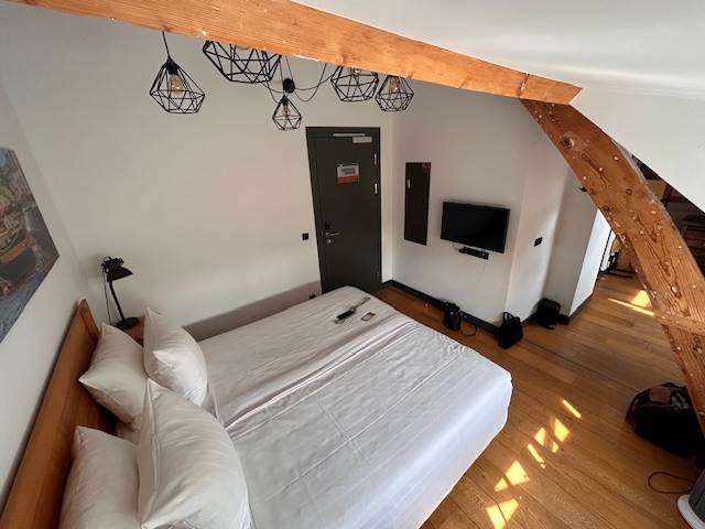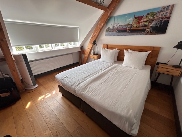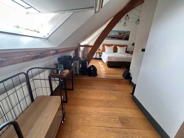 Ist sehr entspannt und die Anreise mit 2.5 Stunden von Düsseldorf verhältnismäßig kurzweilig. Am Empfang wird man wie so oft in Holland herzlich begrüßt, über den offen gestalteten Gastraum, wo tagsüber Getränke und Kaffee auf Barista Niveau kredenzt und das Frühstück gereicht wird, gelangt man in den 1.Stock zu den Zimmern.