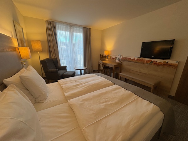 Das Hotel verfügt neben dem Frühstücksangebot auch über eine Offerte zum Abendessen und sogar Room-Service. Allerdings nicht wie in einem 5 Sterne Haus rund um die Uhr. Auch wenn es kein Schwimmbad gibt, die Gym ist funktional eingerichtet und die Sauna ist sauber und neueren Baujahres. Auf dem Flur stehen ganz amerikanisch die Eiswürfel-Maschinen. Die Zimmer verfügen über eine Minibar, haben eine gewissen regionalen touch, der Safe und das obligatorische Internet funktionieren einwandfrei. Die Bäder könnten bei Gelegenheit mal ein update erhalten und nicht jedem Gast gefällt der Teppichboden im Zimmer. Für 20 Euro parkt man das Auto in der Hoteleigenen Tiefgarage, der Laufweg in das Stadtzentrum ist mit 5-7 Minuten auch extrem kurz.