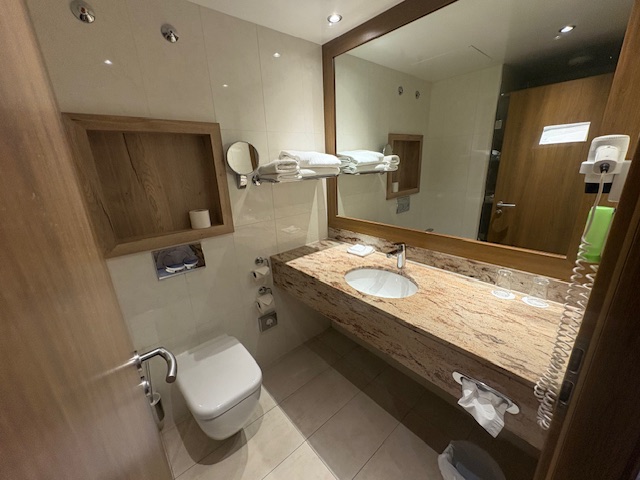 Ist freundlich und effizient in dieser 4 Sterne Herberge. Wenn die Firma seinen Mitarbeitern die 100 Euro Keule in Sachen Ausgaben auferlegt hat oder besser noch weniger, dann wirds hart schöne Häuser wie im Privatleben zu besuchen. Aber immerhin gibt es hier für den Firmentarif eine gewisse Qualität. Überhaupt finde ich das Holiday Inn Häuser sich seit Ende der Covid Zeit gesteigert haben. In Auckland übernachtend war es auch ein Haus der IHG Gruppe, im Juli in Osaka wird es ebenfalls eines sein. Obwohl kein Membership Status vorliegt, dafür sind es dann jährlich doch zu wenige Übernachtungen, wird man hier wörtlich als Member begrüßt.