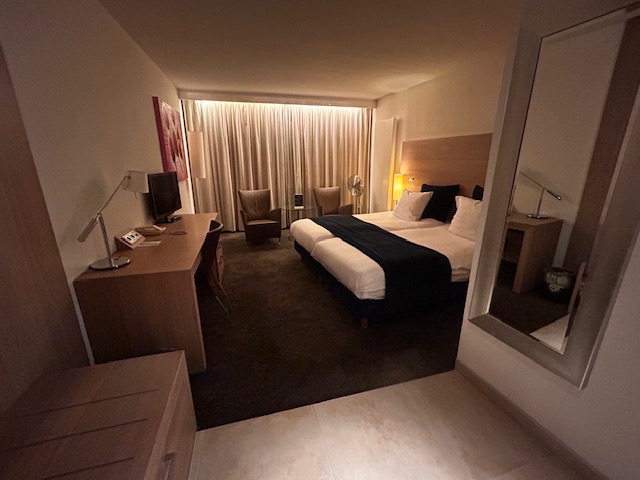 Das Hotel verfügt über 106 Zimmer wobei auch einige behindertengerechte zur Verfügung stehen. Das angemietete Superior-Hotelzimmer ist ca. 30 qm groß, hat 2 Sessel, einen Flachbildschirm aus den frühen 2000ern und ein Doppelbett mit Ritze! Das Badezimmer hat ebenfalls den Charme von vor 25 Jahren, eine Badewanne mit integrierter Dusche lädt zum frisch machen ein. Das Zimmer selbst ist zu 70% mit Teppichboden ausgelegt und zu 30% mit Fießen, dass muss man mögen.