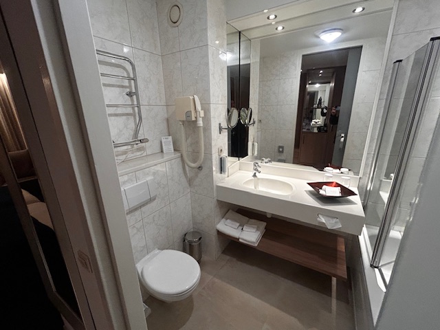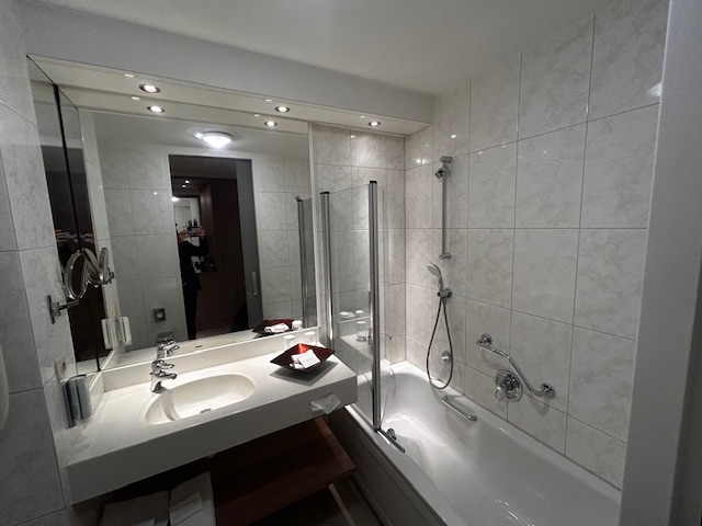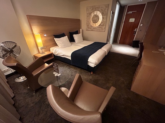 Das Hotel verfügt über 106 Zimmer wobei auch einige behindertengerechte zur Verfügung stehen. Das angemietete Superior-Hotelzimmer ist ca. 30 qm groß, hat 2 Sessel, einen Flachbildschirm aus den frühen 2000ern und ein Doppelbett mit Ritze! Das Badezimmer hat ebenfalls den Charme von vor 25 Jahren, eine Badewanne mit integrierter Dusche lädt zum frisch machen ein. Das Zimmer selbst ist zu 70% mit Teppichboden ausgelegt und zu 30% mit Fießen, dass muss man mögen.
