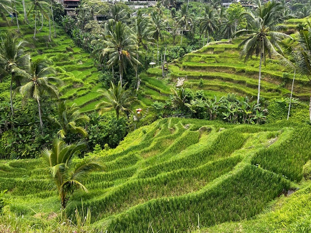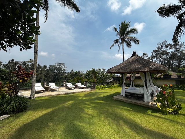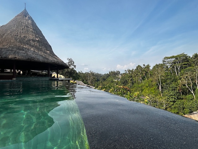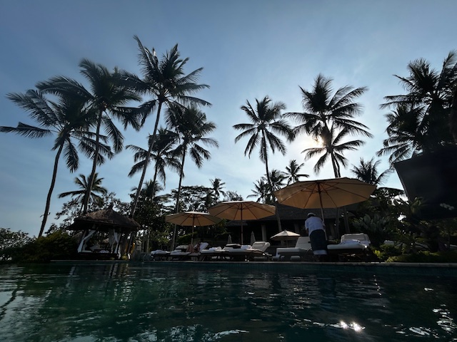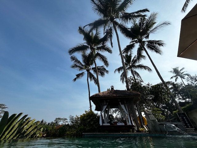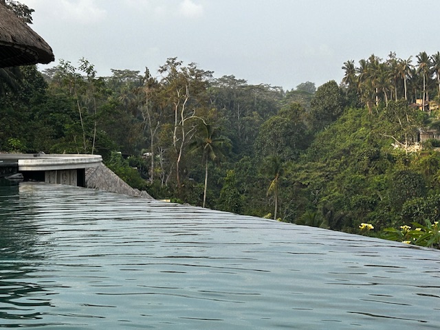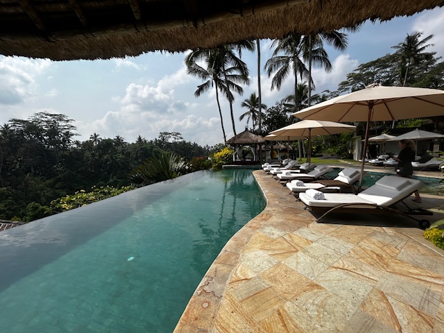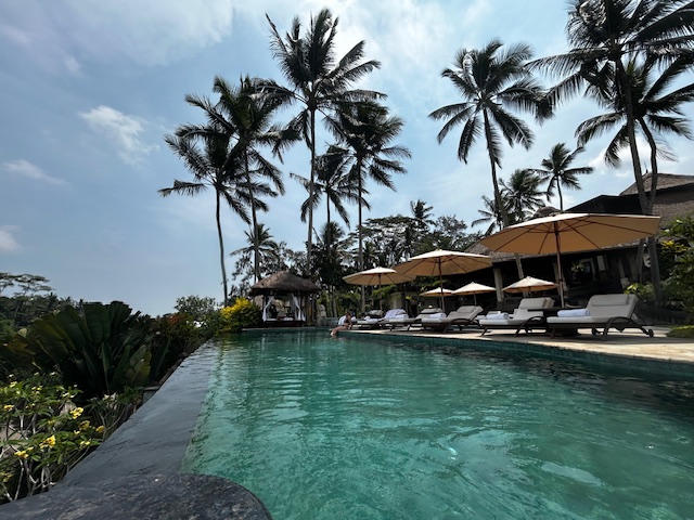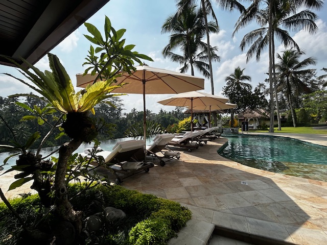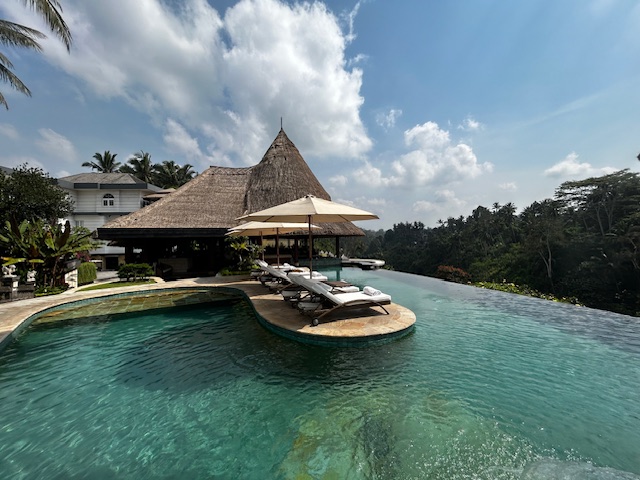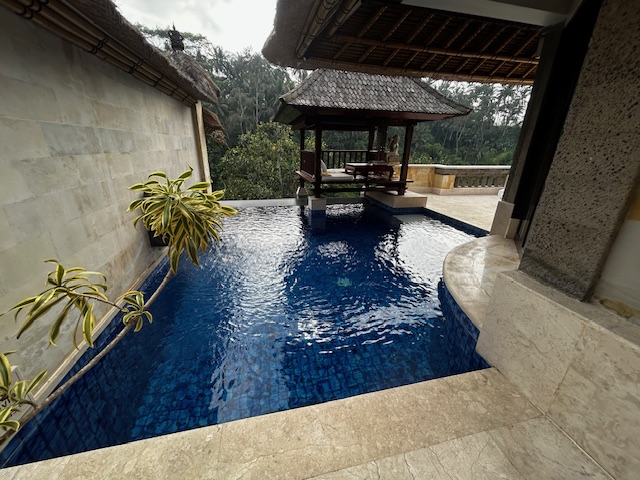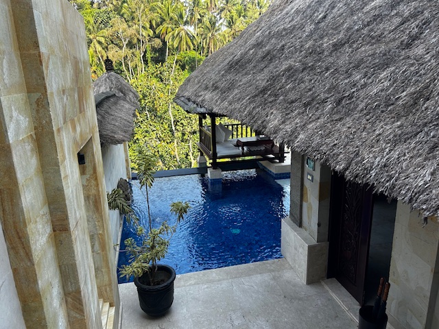 Wer in oder auf Bali ein wenig zurückgezogen seine Zeit verbringen will, der fährt in das Landesinnere. Zum Beispiel nach Ubud, wo man das Viceroy findet, eine Herberge aus dem Luxus-Segment. Bei uns fällt für 4 Nächte die Wahl auf eine Deluxe Villa, mit einem kleinen Pool der im Stil eines Infinity angelegt ist. Anders als diese am Strand, scheint man in ein Meer von Kokos-Palmen hinauszuschwimmen, ein Traum.