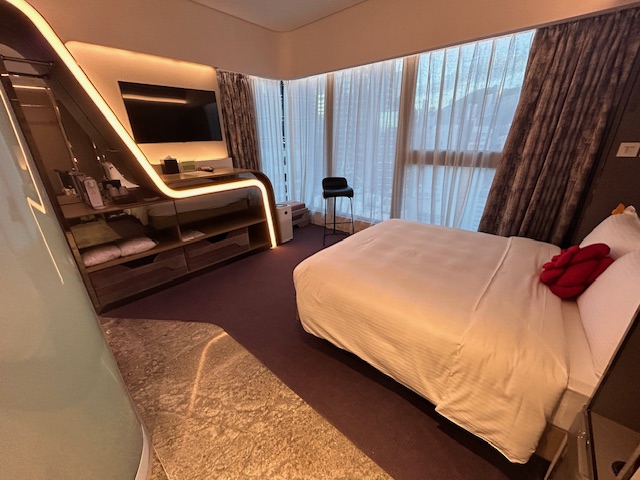 Das Hotel selber ist ein cooles Designhotel, im 27 Stock hat man eine gewisse Aussicht, es ist sauber und mit 19 qm recht klein oder auch relativ groß für Hongkonger Verhältnisse. Als ganz smarten Service erachte ich eine 4G Pocket Internet Station, gerade wenn man mit dem eigenen Fon nicht im Roaming ist, kann hier der eine oder andere Euro gespart werden. Da die lokale Regierung in Sachen Müllvermeidung und Plastik einen neuen Weg geht, kann man sein Wasser im Zimmer filtern, von der Optik sieht das Gerät wie eine Nespresso Kaffeemaschine aus.