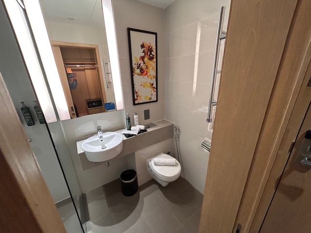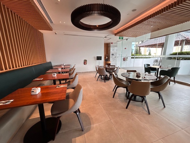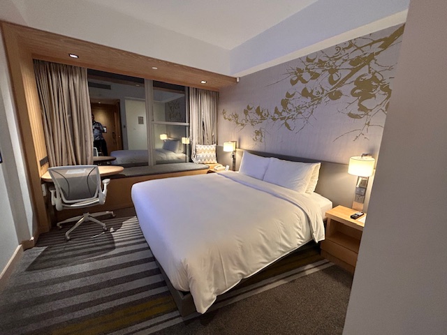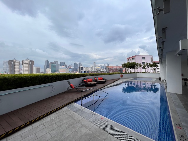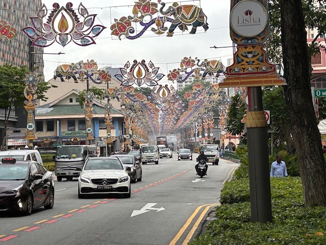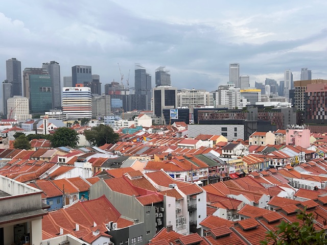 Vom Changi Airport sind es nur 25 Minuten um diese späte Tageszeit, besser geht es nicht. Die Kosten hierfür sind immer noch übersichtlich und mit 28 Euro bezahlbar. Das Garden Inn liegt mitten im Stadtteil Little India, fernab von Orchard Road oder der Marina. Vor 2 Wochen war hier die Formel 1 zu Gast, viele extra aufgestellte Leitplanken sind noch nicht demontiert. Der Empfang ist höflich und schnell geht es in den 22. Stock in einen sogenannten King Guest Room. Auch hier sind 18 QM nicht wirklich viel, aber sicherlich ausreichend für 1 – 2 Personen. Das Zimmer offeriert alle Annehmlichkeiten des 21.Jahrhunderts, von WLAN, bis Fön, selbst ein Bügeleisen und Brett sind noch im Schrank neben dem Safe verfügbar. Der Ausblick auf Wohnblocks die aber nicht direkt davor platziert sind, ist somit auch völlig in Ordnung. Das Badezimmer ist geräumiger als noch in Hongkong, die Regendusche vermittelt ein wenig die Exotik der Region. Von hier sind es übrigens nur noch 2-3 Stunden in die Inselwelt von Indonesien oder Malaysia, was im November 2023 auf der Tour stand. Unvergesslich die Zeit auf Bali und Lombok. Als Hilton Gold Member erhält man das Frühstück für „umme“, hier wechseln sich neben Obstsalaten, Säften, Kaffee oder Tee auch Eierspeisen ab, die am Counter a la minute von den Köchen hergestellt werden. Die direkt davor gelagerte Terrasse mit Pool und dem Ausblick auf die Stadt ist ebenfalls bei gemäßigten Temperaturen eine gute Verweilstätte. Wer vor oder nach der Mahlzeit gerne einen workout machen möchte, der besucht im Erdgeschoss die Gym.