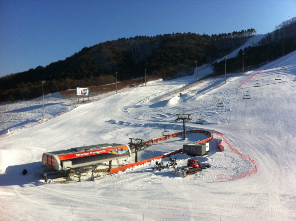 Zum Abschluss meiner Reise stehe ich in der Olympia Retorte Pyeongchang auf Skiern, ja richtig.