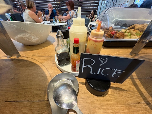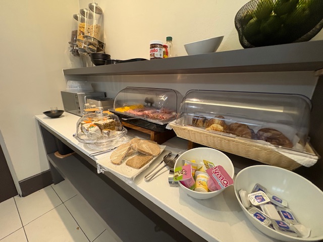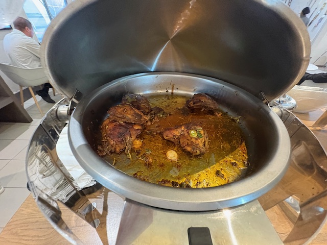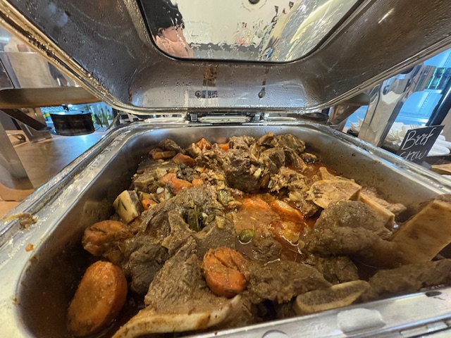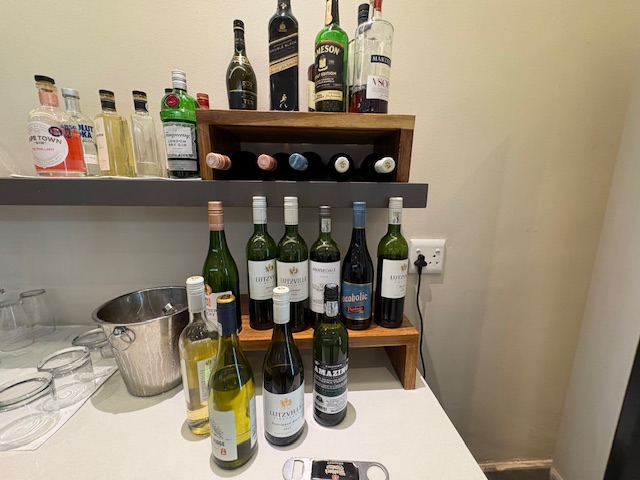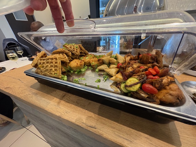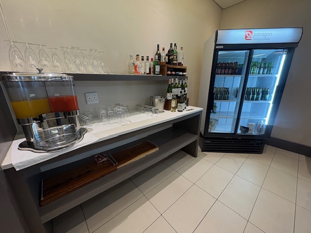 Im Angebot sind diverse warme Speisen, die teilweise nicht mehr so sonderlich frisch vorgehalten werden, ein wenig Eiersalat, so einige südafrikanische Weine und „the hard stuff“, sprich Gin und Vodka.
