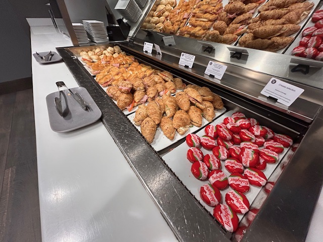 Mal wieder heißt es warten auf den Abflug. Das Produkt ist Economy mit ITA, der italienischen Staatsairline, die vermutlich bald von der Lufthansa aufgekauft wird. Warten am Gate ist irgendwie „average“, somit geht es in die Club Sala Lounge. Zugang erhalte ich durch den Priority Pass. Geöffnet ist die Einrichtung von 5:30 bis 21:30. Der Gast findet gute Sitzgelegenheiten, es gibt diverse lokale Weine und Bier im Angebot. Dazu einige Sandwiches und Croissants die sich gut verspeisen lassen bei klimatisierten Bedinungen. Der Zugang ist nach der Sicherheitskontrolle bei den Flugsteigen 17 und 18.
