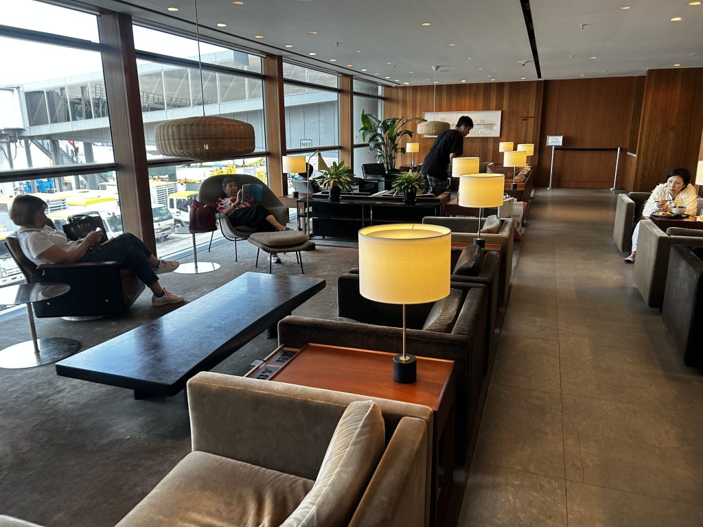 Überall in der Lounge lässt es sich gediegen sitzen und auf das umtriebige Vorfeld schauen und die Zeit verfliegt schon hier wie im Flug. Insgesamt wenn auch etwas in die Jahre gekommene Möbel, eine auch im globalen Kontext, hochwertiger Aufenthaltsort bevor es in die nächste Stadt geht. Ich komme sehr gern wieder.