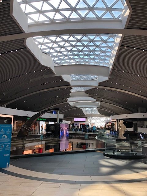 Ich starte in Düsseldorf um 9:00 Uhr in Richtung Flughafen und steige in den Jet nach Zürich. Der A 220-100 hat etwas von private jet, ist allerdings auch gut gebucht, zum Glück bleibt mein Nebenplatz frei. Mit einer Stunde und 10 Minuten Umsteigezeit reicht es auf einen kurzen Abstecher in die Lounge. Hier ist bis auf den Besteckkasten alles vorbildlich auf Covid und die Umstände des Reisens angepasst. Aus Plastik gebaute Trennwände, erweiterte Sitzplatzbereiche mit genügend Abstand sind maximal begrüßenswert! Trotzdem fällt mir noch auf das der Besteckkasten, in welcher jeder hinein greift, nur eine suboptimale Lösung ist. Gegen 12:50 geht es nach FCO, wie die internationale Abkürzung für Rom im Luftverkehr heißt. Mit dem gleichen Flieger geht es auch wieder zurück und so vertreibe ich mir die Zwischenzeit mit „Pasta-Shopping“.  Um 15:15 hebt der Airbus wieder ab in Richtung Zürich mit Ziel Düsseldorf Italien ist aktuell kein Risikogebiet, der Corona-Test entfällt somit.