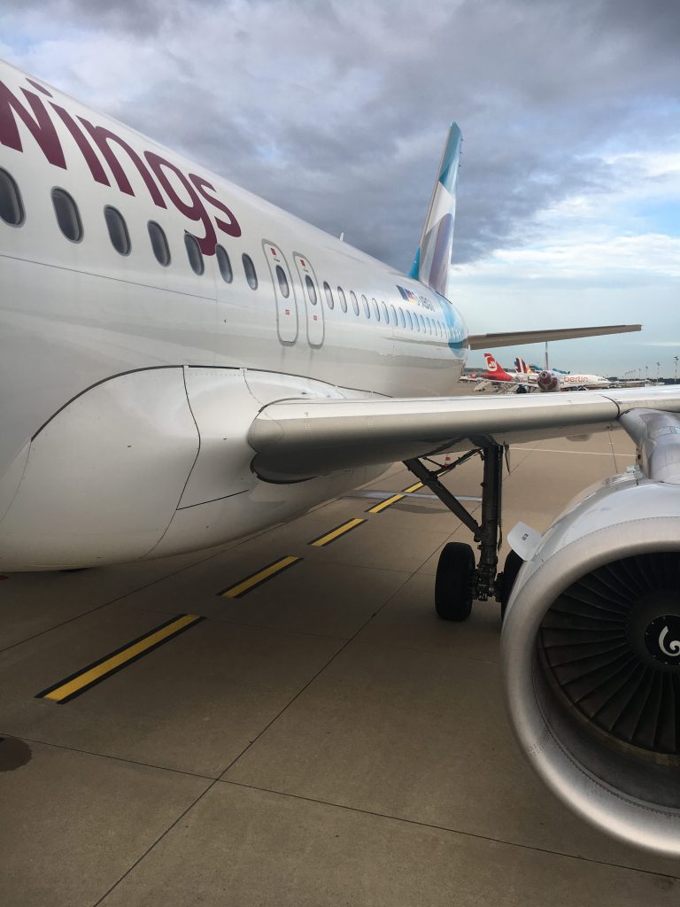 Von der Algarve zurück nach Hause. Wenn hier TAP Air Portugal nicht den Flug storniert hätte, wäre das eine Reise mit einem soliden Star Alliance Partner via Lissabon zurück ins Rheinland gewesen. So kam es, dass wir ein Last-Minute-Flug zum High-Class Preis, von 410 Euro in der Economy zahlten, zugegeben freiwillig :). Wenn man das Erlebnis einmal beschreiben soll, es ist keines. Auf dieser Strecke kann man auch nicht jeden Tarif der Eurowings kaufen, zum Beispiel den „Best“.  Er stellt so eine Art Business Class dar und bietet ein paar Vorzüge, wie beispielsweise einen freien Mittelsitz. Zudem kostet er öfters weniger als 200 Euro pro Strecke, nur halt diesmal nicht. Da es sowieso die 2 letzten Plätze waren, welche man online kaufen konnte, ist der Flieger, eine A 320 bis auf den letzten Platz besetzt. Aber fangen wir mal beim Check-In an, dieser erfolgt sehr zügig und zu meiner Überraschung wird hier noch der bekannte Priority-Service angeboten, für Statuskunden oder Business Class Paxen, welche es ja wie erwähnt auf diesem Flug nicht gibt. Der Faro Airport ist ein sehr aufgeräumter und mit guten F&B Brands ausgestatteter Flughafen. Unter anderem findet man hier Costa Coffee, eine Carlsberg Bar oder auch Burger King. Die Sicherheitskontrolle unterscheidet sogar zwischen Fast Track für Vielfliegern und denen, ich sag mal als klassische Touristen durchgehen. Beide Services sind effizient und sehr gut organisiert, so dass jeder trotz hohen Aufkommens innerhalb von 15 Minuten durch ist. Anschließend findet man wieder die bekannten Brands der „Land-Side“, also beide Seiten spiegeln die Food Marken. Die ist aus meiner Sicht auch eine gute Effizienz und der rote Faden des Airport Konzepts wird damit unterstrichen.