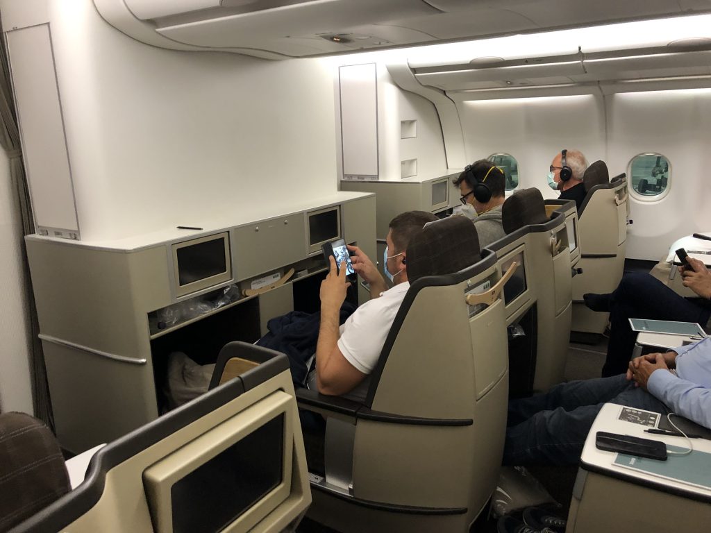 Es ist mal wieder Reisezeit! Dies ist verbunden mit der richtigen Meilenklasse immer erträglicher als irgendwo hinten Platz zu nehmen. So geht es an einem Freitagabend mit Lufthansa via München nach Dubai. Die Check-in Erfahrung hat sich auch stark geändert, seit Covid 19 eine gewisse Präsenz übernommen hat. Mehr Dokumente gleich mehr Wartezeit, an diesem Abflugtag aber immer noch erträglich. Als Senator checkt es sich via First Class Counter, da wo angeboten, schnell ein. Die Sicherheitskontrolle hat in Düsseldorf keine Priority Lane, ist aber ebenfalls nicht sonderlich stark besucht. Der Aufenthalt in der LH Business Class Lounge ist vom gewohnten Angebot geprägt, 3-5 rote und weiße Weine, Heiß- und Kaltgetränke, eine Butterbrezel und einige Salate, ein gutes Angebot gerade in Zeiten von reduzierten Budgets, einer so gebeutelten Industrie. Nach München gibt es ebenfalls noch ein F&B Programm, wir Essen das Roastbeef und trinken dazu einen Rheinhessischen Riesling.