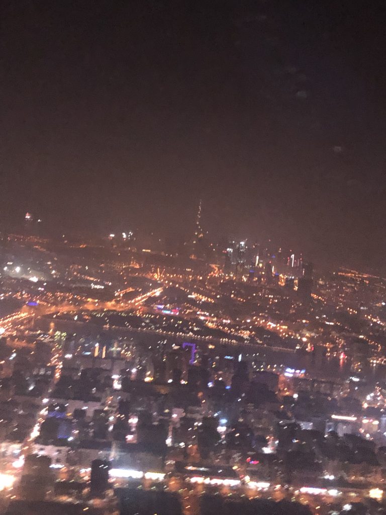 Auf LH 638 nach Dubai im modernen A 350, fallen dann schnell die Augen zu, Abflug ist 22:35 und die Röhre ist rappelvoll. Viele zieht es in die Sonne und Dubai verspricht 27 Grad aufwärts. Eine Woche vorgezogener Sommer wartet, mit nur 2/3 Stunden Zeitumstellung. Das Bordprodukt der LH Business Class gehört eher in die Sparte, „renovierungsbedürftig“. Woran ich das fest mache? Zuerst einmal an der 2-2-2 Bestuhlung, hier muss man noch über den SitznachbarnIN turnen, wenn man am Fenster sitzt und mal die Toilette aufsuchen möchte. Ohrstöpsel oder eine Maske werden auf dem 5:30 h Flug auch nicht mehr angeboten-warum auch, schliesslich ist es ja nur ein Nachtflug. Die 2 Kinder auf den Sitzen dahinter sind noch nicht müde und strengen sich an, nicht zu viel Lärm zu machen. Das Catering probieren wir erst gar nicht mehr aus, es wird direkt geschlafen. Der Sitz lässt sich glücklicherweise noch in ein flaches Bett verstellen und so sind 3 Stunden Schlaf möglich. In Dubai kommen wir pünktlich um 7:40 morgens an und die Einreiseformalitäten sind innerhalb 1 Stunde inklusive Gepäck einsammeln machbar.