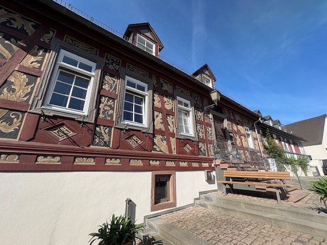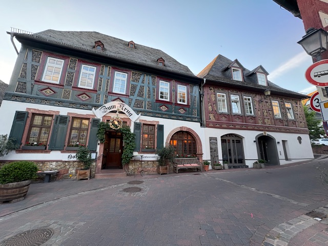 Dazu gehört natürlich auch ein solides Hotel. Hattenheim liegt idyllisch am Vater Rhein, eingebettet zwischen Rheinhessen und dem Taunus. Trotz seiner doch überschaubaren Größe gibt es einige Herbergen, was nicht zuletzt der Popularität der Region geschuldet ist. Diesmal fällt die Wahl auf „den Krug“, der 1720 als Fachwerkhaus entstand und mit simplen Weinausschank startete. Seit 1945 ist das Haus in den fachmännischen Händen von Familie Laufer, die hier in der 3.Generation ein Restaurant und das Hotel betreiben.