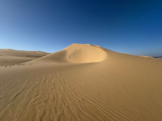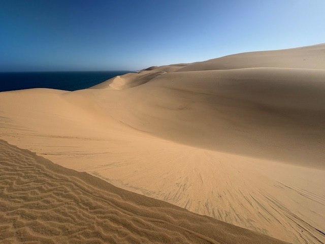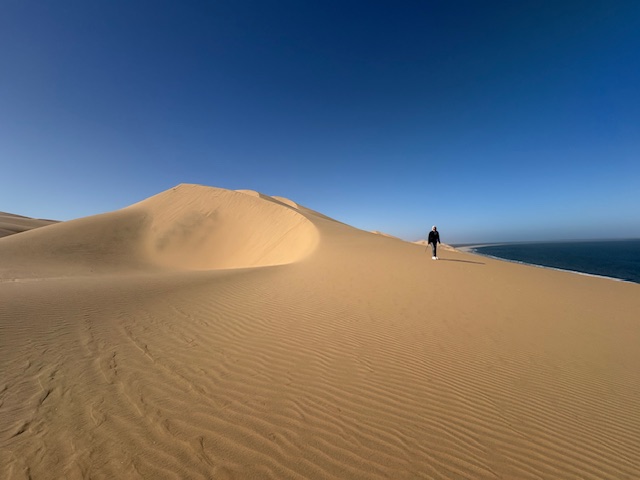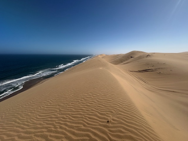 Die Fahrt in das entlegene Swakopmund durch die Wüsten-Szenerie ist für sich schon etwas besonders. Die Historie der Kolonialzeit, gepaart mit den mächtigen Sanddünen die es zu erkunden gilt, der lokalen laid-back Mentalität, guten Surfspots und der durchaus akzeptablen Gastronomie, machen die Reise hierher wertvoll. Man bewegt sich in Zeiten der Vergangenheit und Gegenwart, sowie den gloablen strategischen Themen (seltenen Erden), obwohl alles eher nach dem Ende der Welt im entspannten Swakopmund klingt!