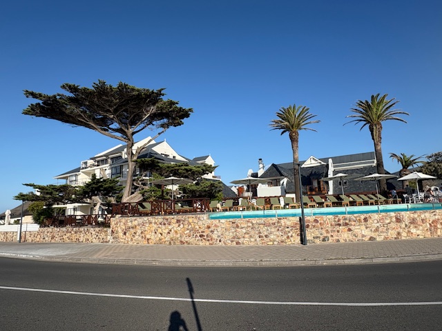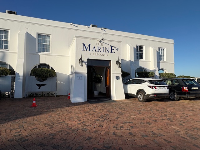 In Hermanus angekommen geht es zuerst in das Quartier. Herberge der Wahl ist das The Marine Hotel direkt an der Felsenklippe mit seiner 123 jährigen Geschichte. Wo heute das Hotel steht, die Wege in den Ort sind sehr kurz, waren früher noch ganz normale Weidewiesen. Berühmte Gäste machten hier schon Station, zum Beispiel Brad Pitt oder Princess Alice, Countess of Athlone. Im alterwürdigen Gebäude hängt eine Schiffsglocke, die immer dann geschwunge wird wenn Wale gesicht werden. Von Juni bis Oktober ist die Bucht ein Ruheort für die Tiere aller Art, hier verbingen diese den antarktischen Winter und machen mit Besuchern aus aller Welt Kontakt. Das naheliegende Museum dazu bietet ein wenig an Informationen zur vielfältigen Meeresbiologie, die man vorfindet und der Eintritt ist mit 1,50 Euro auch sein Geld wert.